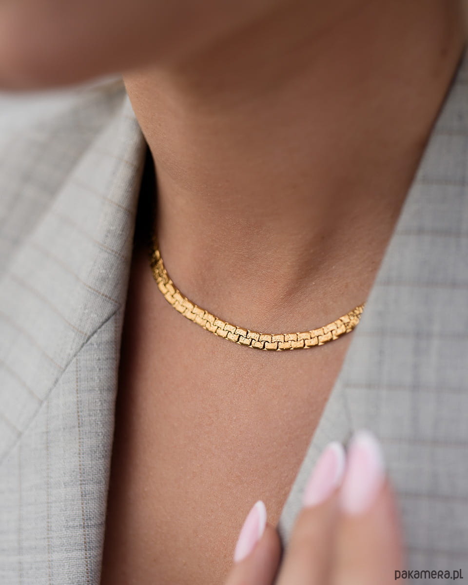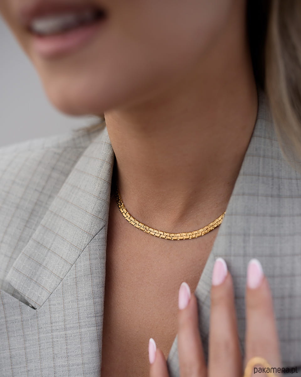 Minimalistyczny złoty łańcuszek, gładki, płaski i elegancki. Pięknie przylega do szyi i odbija światło przy każdym ruchu. To klasyka, która nigdy nie wychodzi z mody.Możesz nosić go solo jako modny złoty naszyjnik ze stali chirurgicznej albo łączyć z innymi łańcuszkami. Pasuje do koszuli, marynarki, topu i sukienki. To baza, która robi całą stylizację.Masz dość biżuterii, która szybko ciemnieje? Ten model wykonany jest ze stali chirurgicznej premium - nie ciemnieje, nie traci koloru i jest wodoodporny. Możesz nosić go codziennie: pod prysznicem, na wakacjach czy na siłowni - bez obaw, że straci swój blask.Wymiary:długość: 40 cm + 5 cm regulacjiszerokość: 0,5 cmMateriał: stal chirurgiczna premiumWodoodporna i hipoalergicznaPodaruj go komuś bliskiemu na prezent.