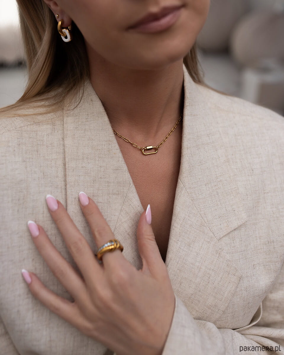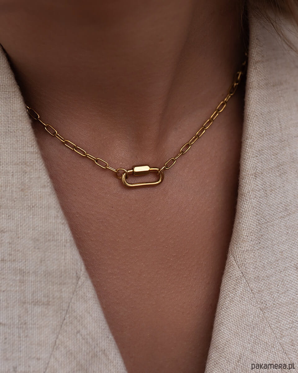 Złoty naszyjnik typu paperclip ze stali chirurgicznej premium Paraiso Sabela
