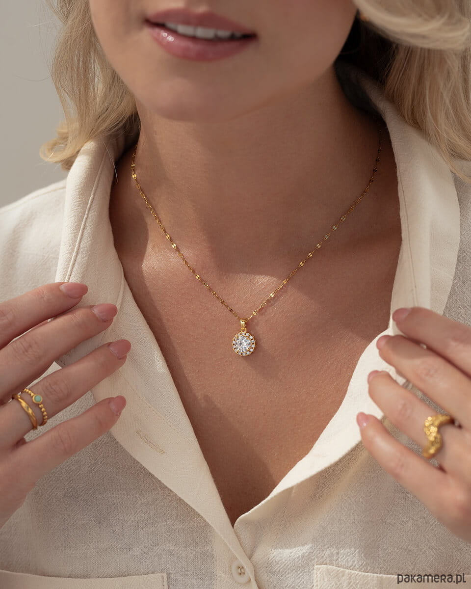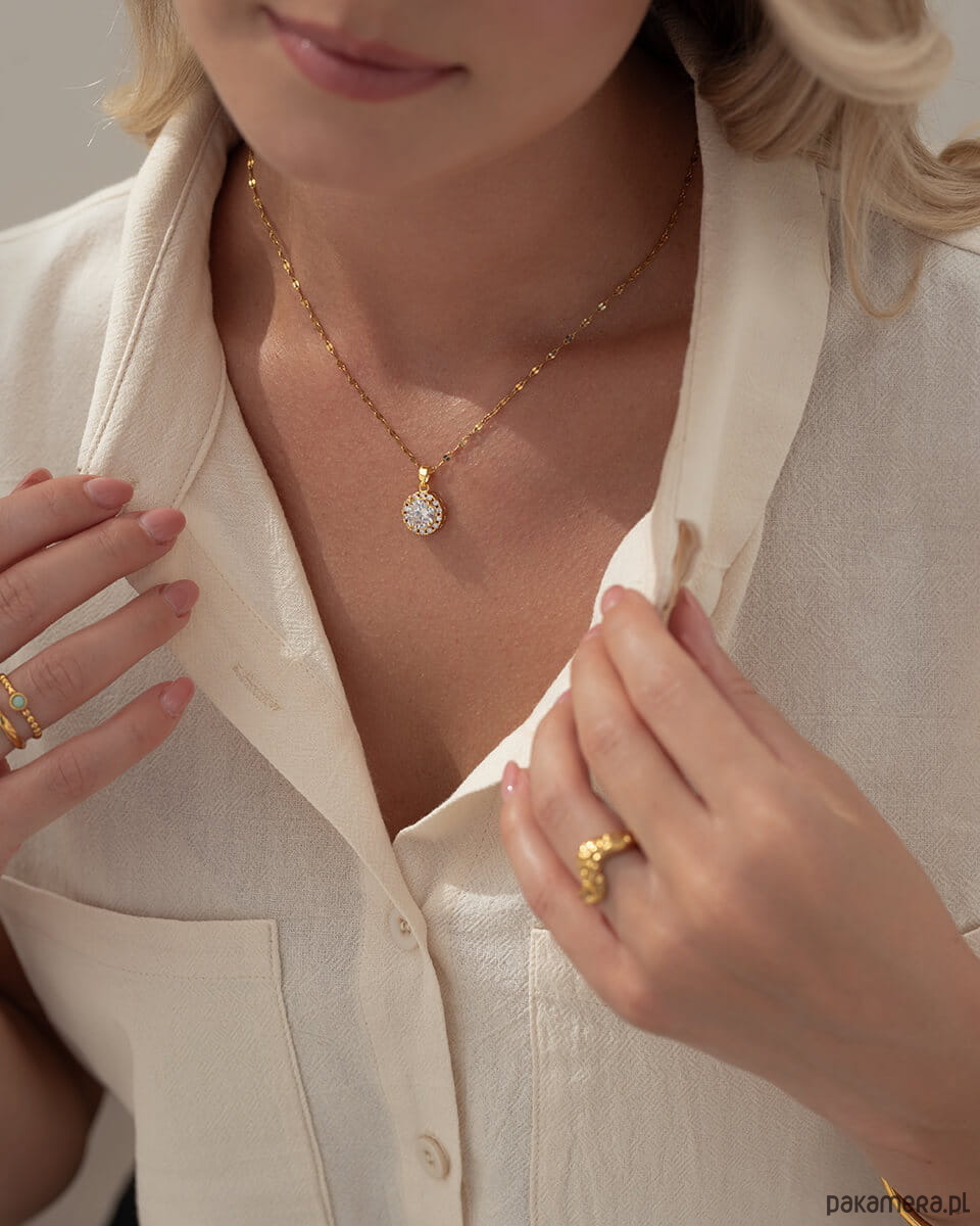 Wykonany z najwyższej jakości stali chirurgicznej i pozłacany 18k złotem, naszyjnik ten łączy w sobie elegancki styl i trwałość. Centralnym punktem jest olśniewająca cyrkonia, która dodaje mu wyjątkowego blasku. Niezależnie od tego, czy szukasz dodatku do codziennych stylizacji, czy eleganckiej biżuterii na specjalne okazje, naszyjnik Valente będzie doskonałym wyborem. Jego subtelny i jednocześnie efektowny design sprawia, że naszyjnik pasuje do każdej sytuacji, dodając Ci klasy i pewności siebie. Dodaj go do swojej kolekcji i przekonaj się, jak wyjątkowa biżuteria może podkreślić Twoją urodę. Zamów teraz i ciesz się blaskiem, który przyciąga spojrzenia!