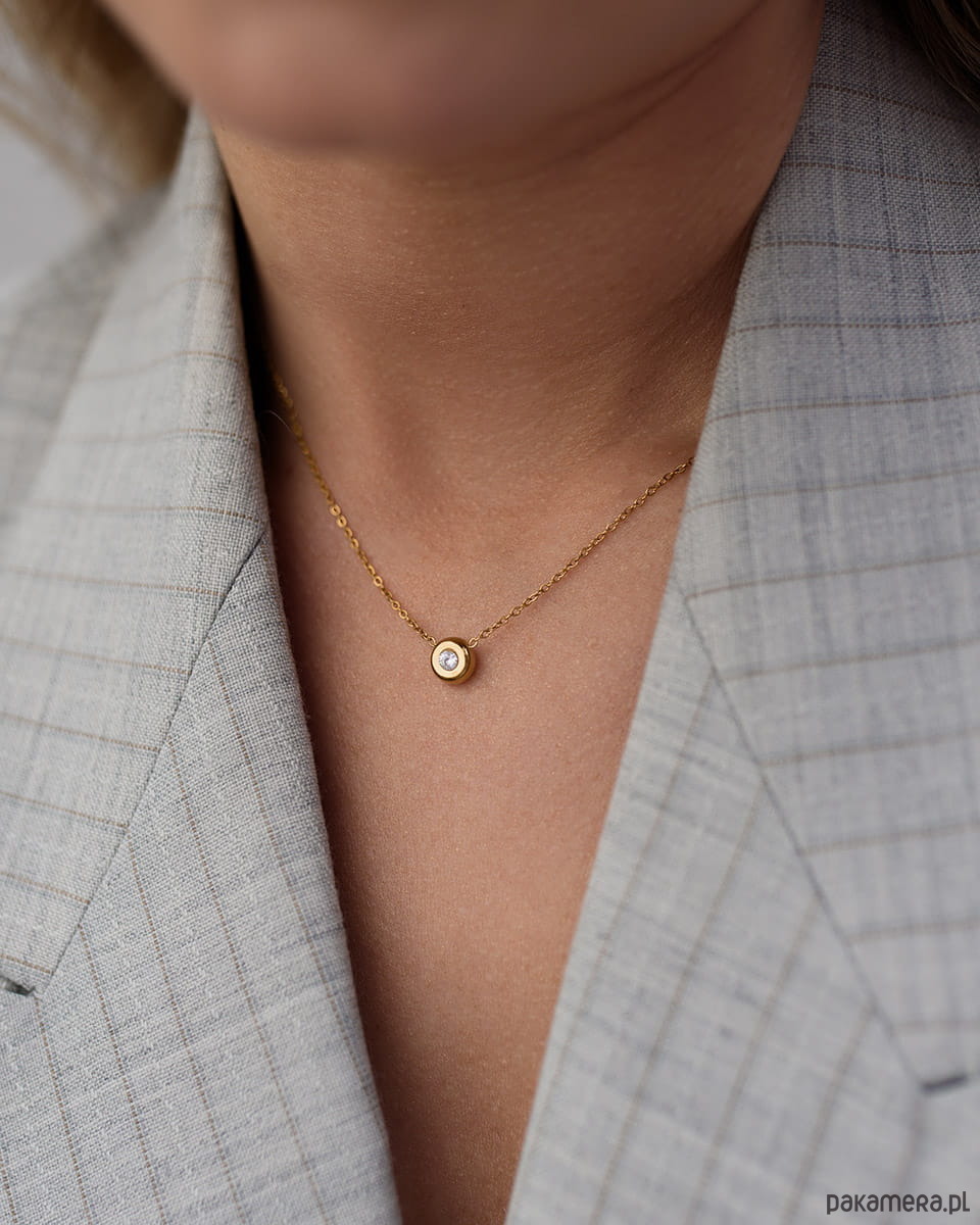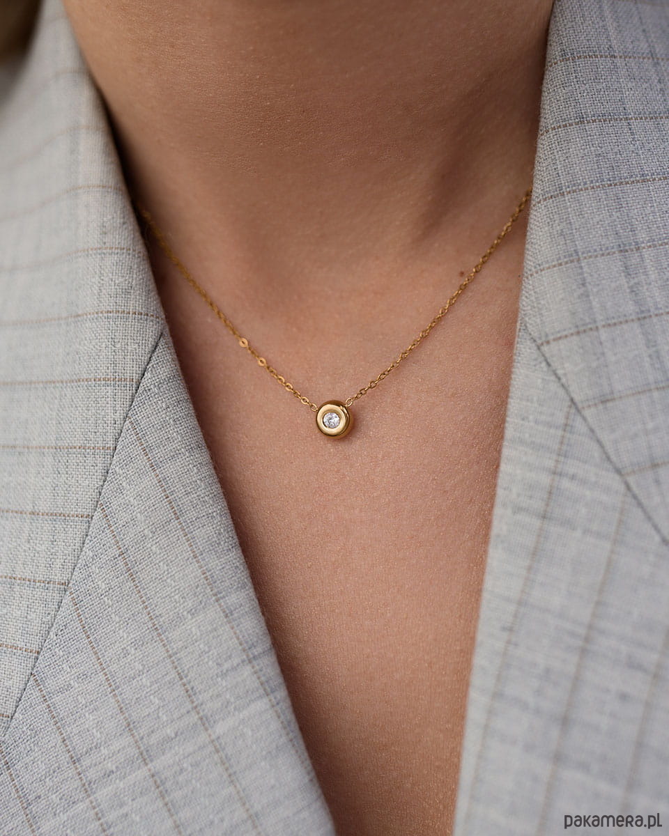 Naszyjnik Lumina to delikatny łańcuszek z centralnym, złotym elementem z osadzoną cyrkonią. Subtelny błysk sprawia, że pięknie podkreśla dekolt i pasuje do każdej stylizacji.Możesz nosić go solo albo łączyć warstwowo, wygląda lekko i bardzo kobieco. To ten typ biżuterii, który zakładasz codziennie i nie masz ochoty zdejmować.Wymiary:- długość: 40 cm + 5 cm regulacjiJeśli nie masz w kolekcji delikatnego, złotego naszyjnika z błyskiem, szybko poczujesz jego brak przy każdej eleganckiej stylizacji. Dobierz do zestawu kolczyki Lumina.Materiał: stal chirurgiczna premiumWodoodporna i hipoalergiczna