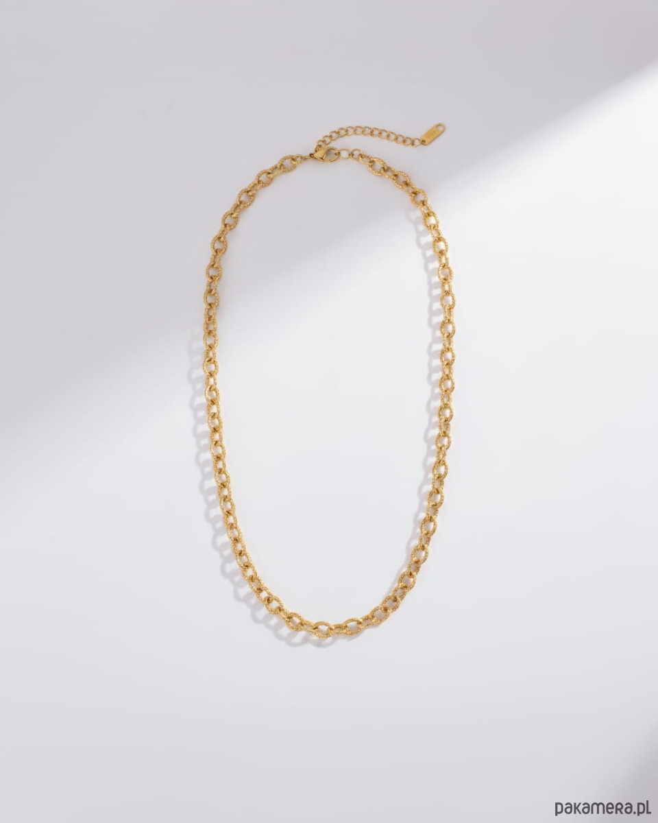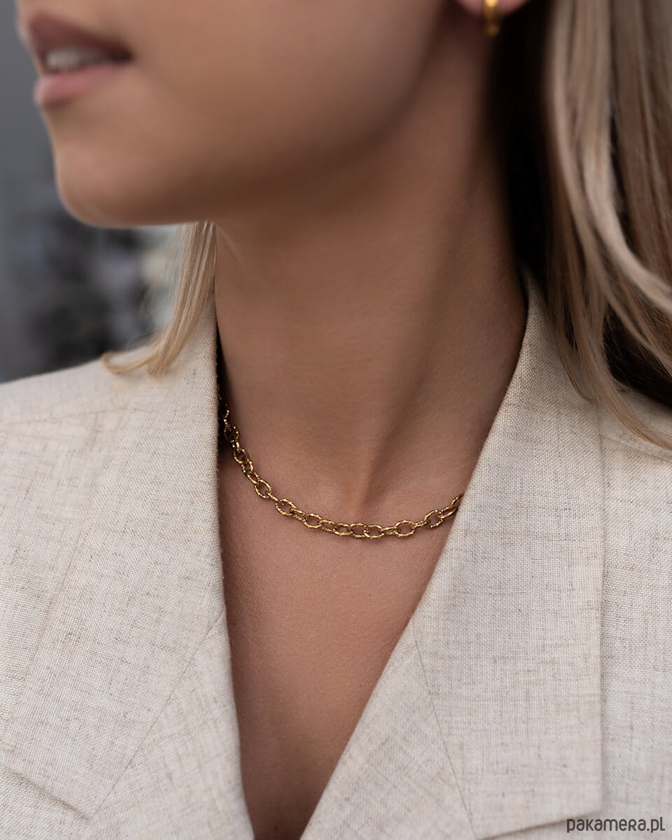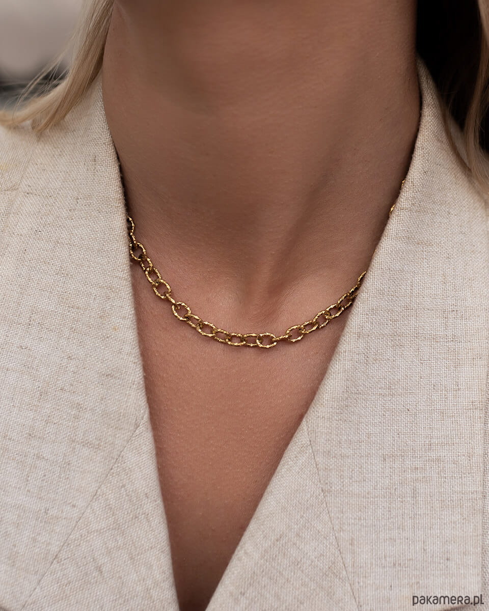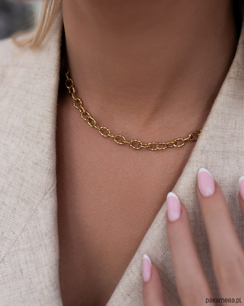 Złoty naszyjnik z drobnymi młotkowanymi ogniwami ze stali chirurgicznej premi