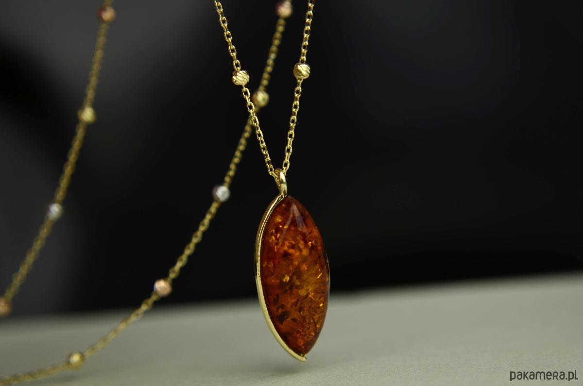 Złoty naszyjnik z koniakowym bursztynem pr. 585