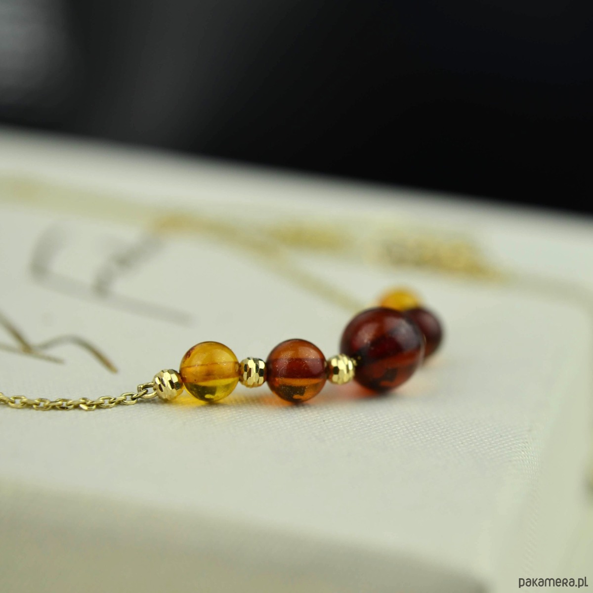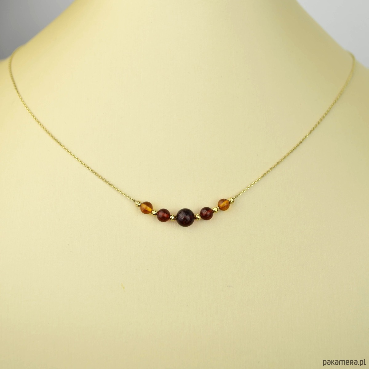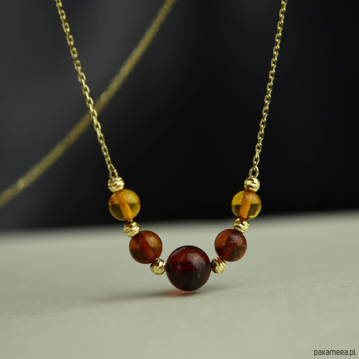 Złoty naszyjnik z koniakowym bursztynem pr. 585