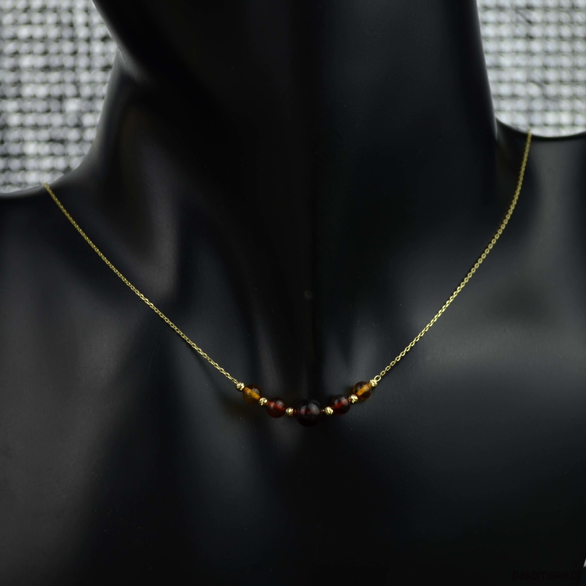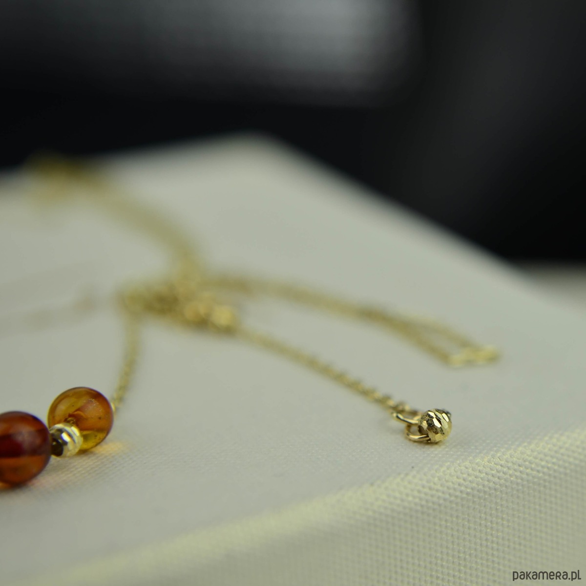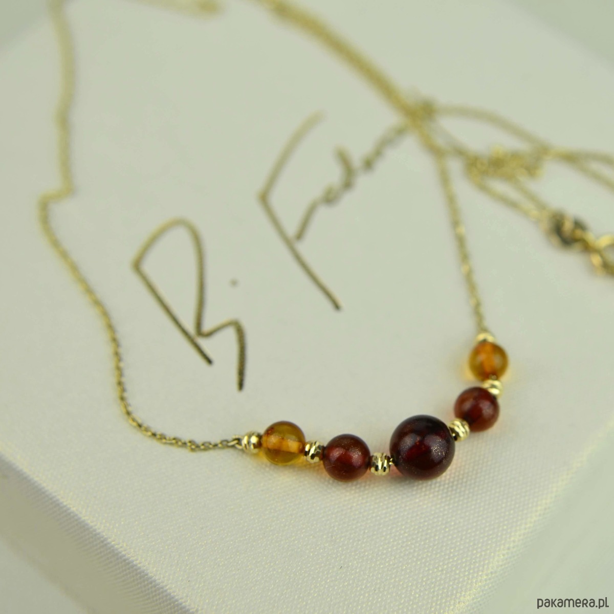 Złoty naszyjnik z koniakowym bursztynem pr. 585
