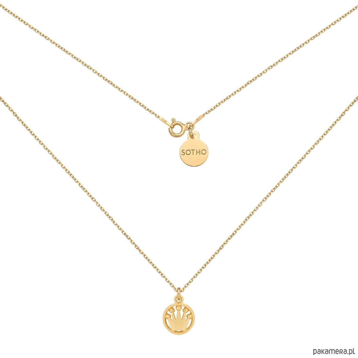 Złoty naszyjnik łańcuszkowy zdobiony koroną i zawieszką z logo marki. Całość wykonana ze srebra 925 powlekanego 24 karatowym żółtym złotem.
