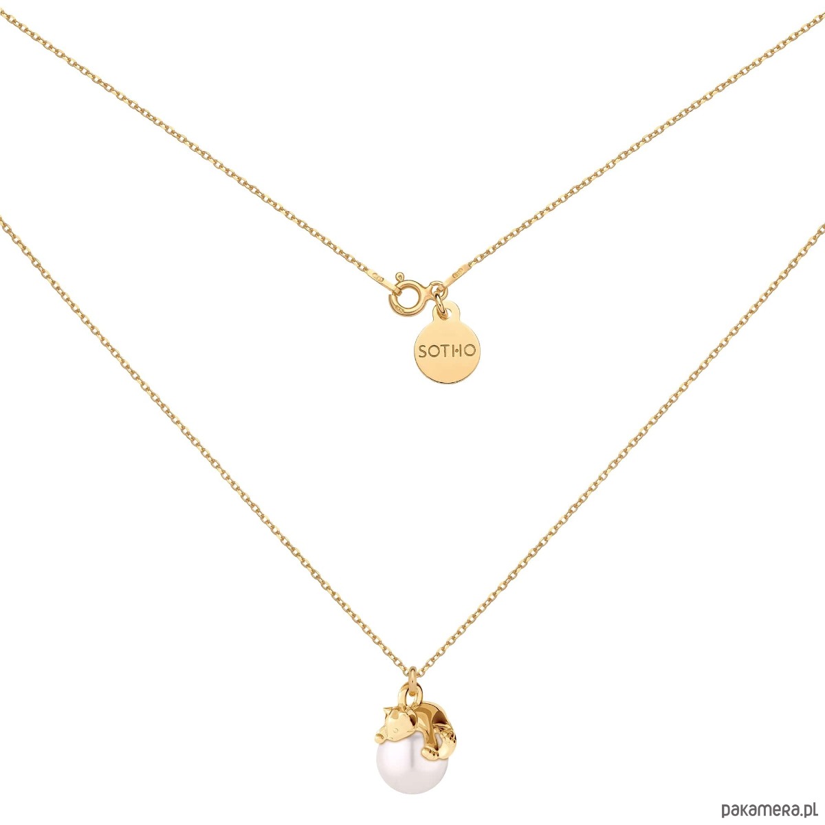 Złoty naszyjnik z kotkiem i perłą SWAROVSKI® CRYSTAL w kolorze białym White. Całość wykonana ze srebra 925 powlekanego 24 karatowym żółtym złotem.