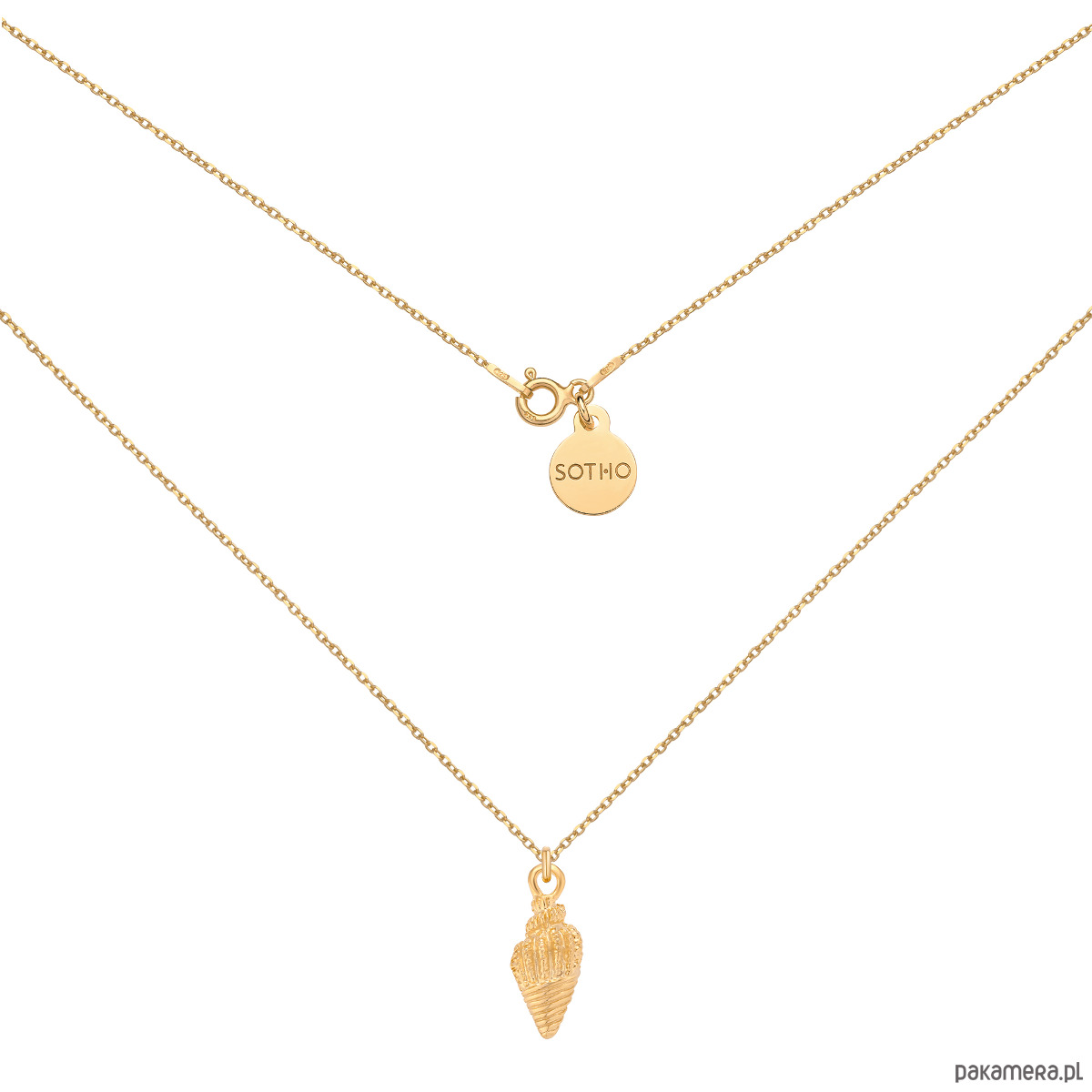 Złoty naszyjnik z muszelką. Całość wykonana ze srebra 925 powlekanego 24 karatowym żółtym złotem.