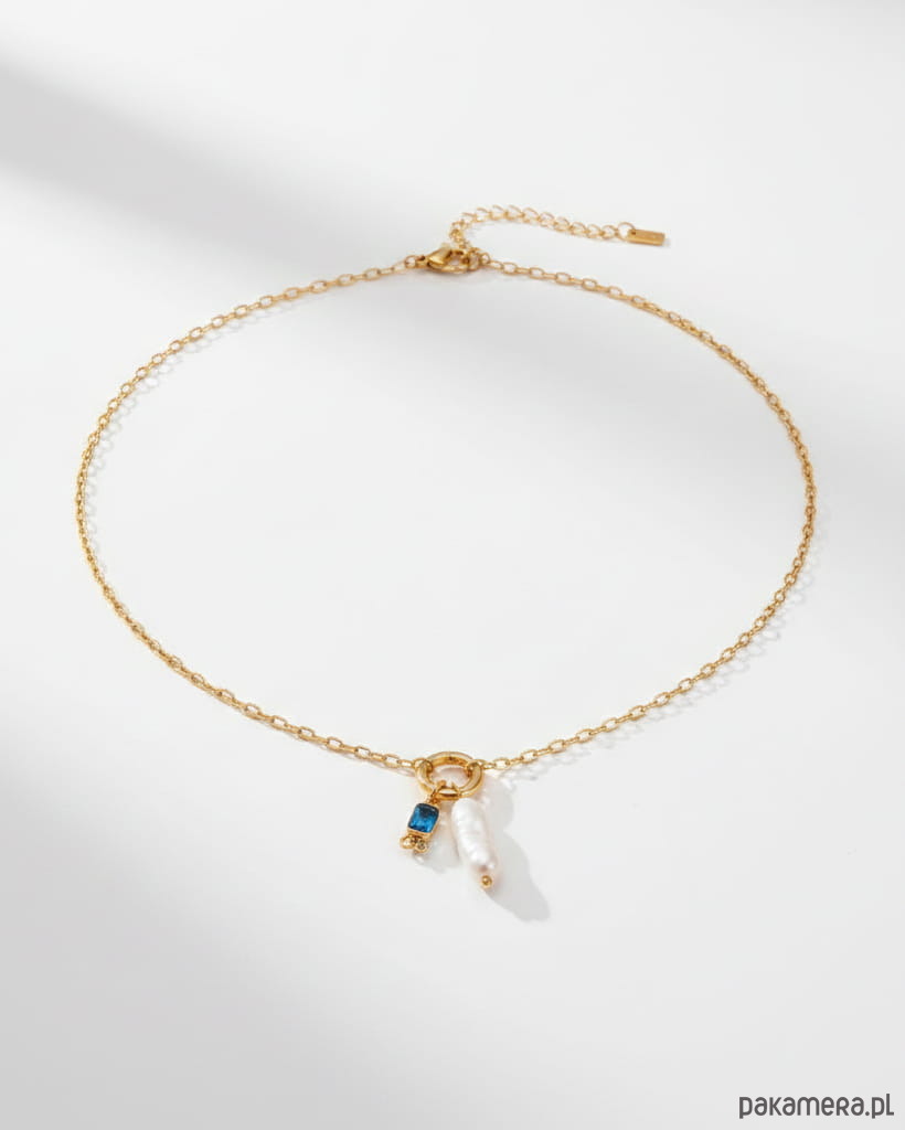 Wymiary: – długość łańcuszka: 40 cm + 5 cm regulacji – długość zawieszki (perła): ok. 2,3 cmMateriał: stal chirurgiczna premiumWodoodporna i hipoalergiczna