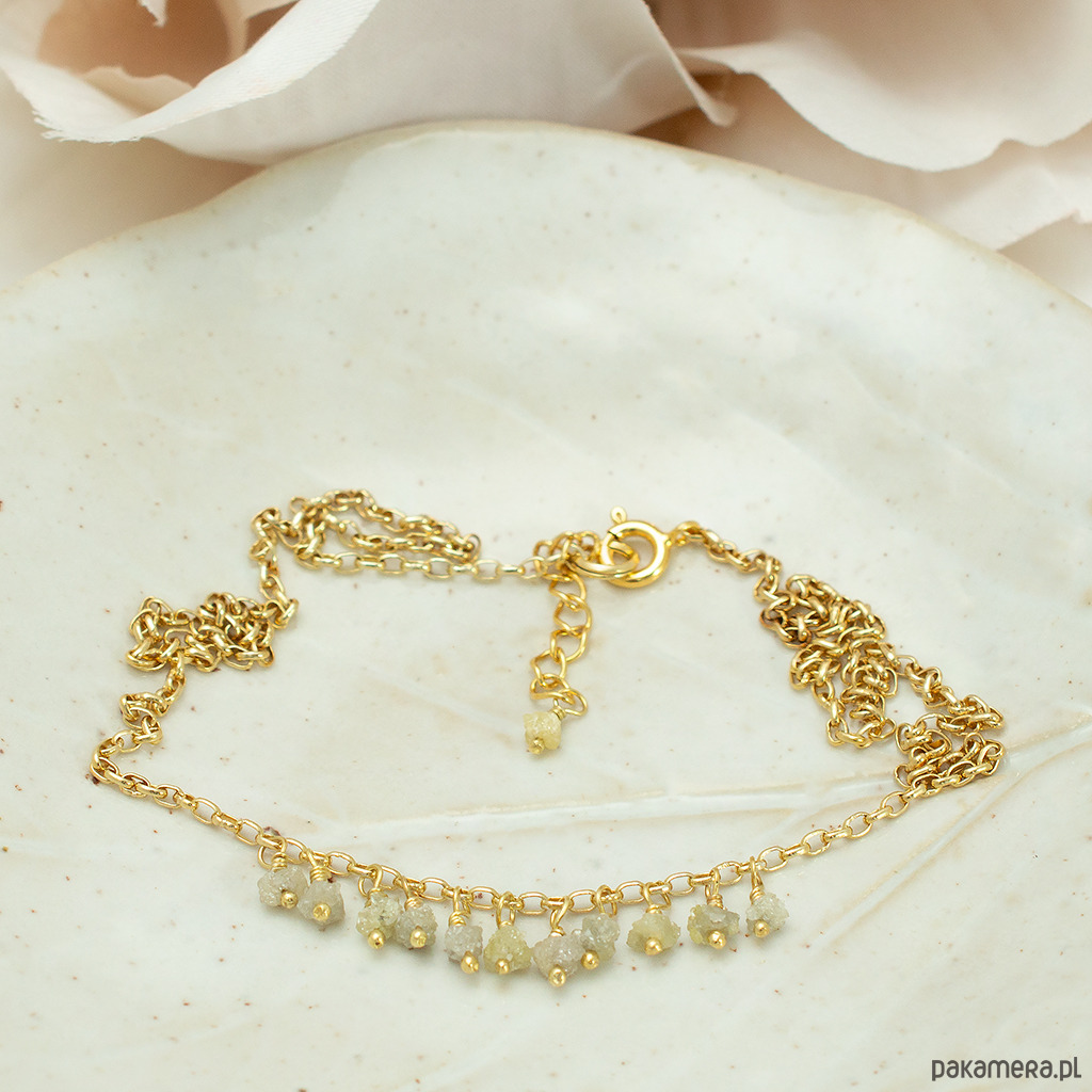 Elegancki, drobny naszyjnik z naturalnymi, surowymi diamentami w kolorze żółtym.