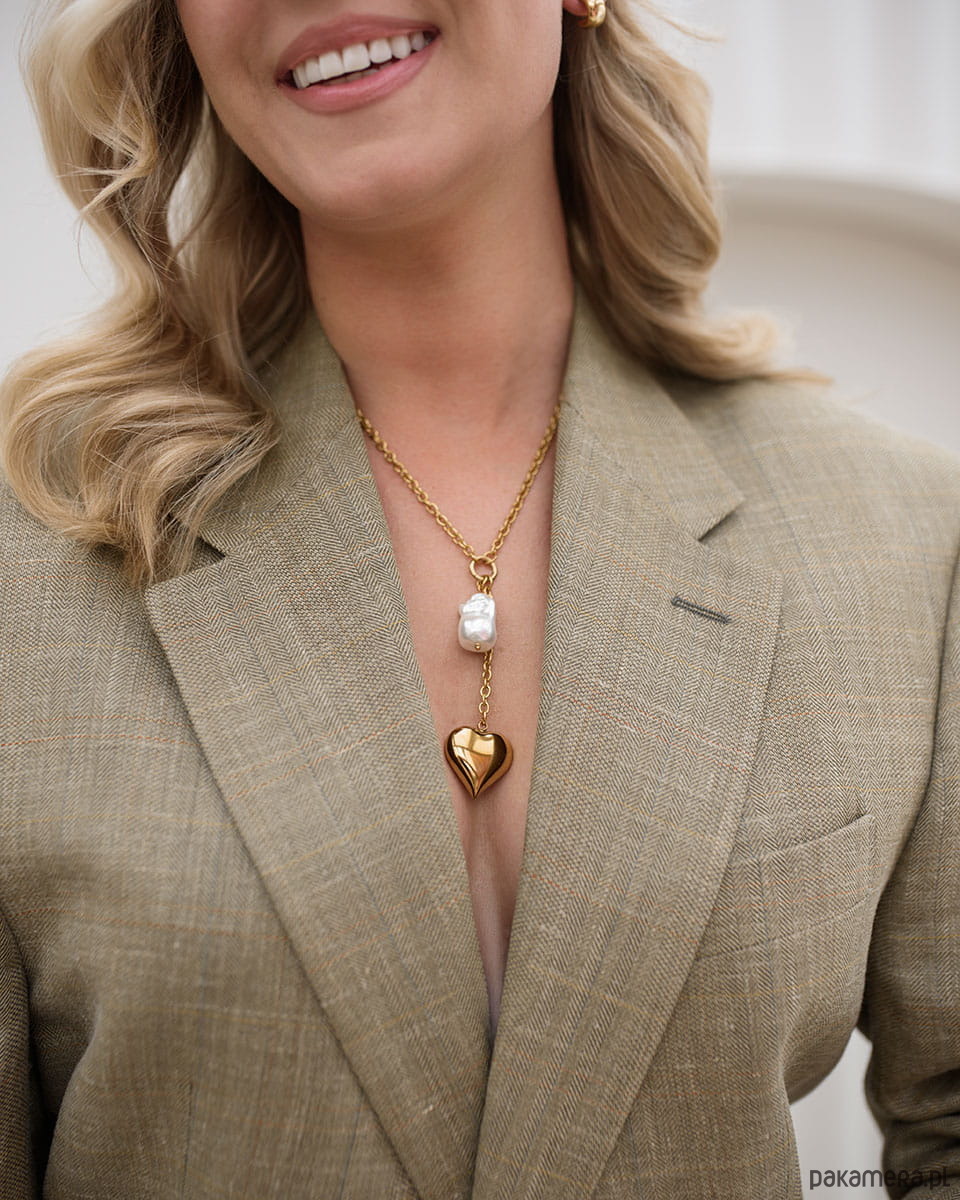 Model Amorelle to złoty naszyjnik ze stali chirurgicznej z zawieszką w kształcie serca oraz dekoracyjną imitacją perły. To połączenie romantycznego symbolu z nowoczesnym, minimalistycznym wykończeniem.Masz dość biżuterii, która ciemnieje i traci kolor po kilku tygodniach?Możesz nosić go pod prysznicem, na wakacjach, nad morzem czy na co dzień bez obaw o utratę blasku. Jeśli zastanawiasz się, jaka biżuteria nie ciemnieje - właśnie ją znalazłaś.Ten naszyjnik to absolutny must-have, doda stylizacji miękkości i kobiecego charakteru.Wymiary: Długość łańcuszka: 45 cm + 5 cm regulacjiWysokość zawieszki serce: 2,5 cmMateriał: stal chirurgiczna premiumWodoodporna i hipoalergiczna