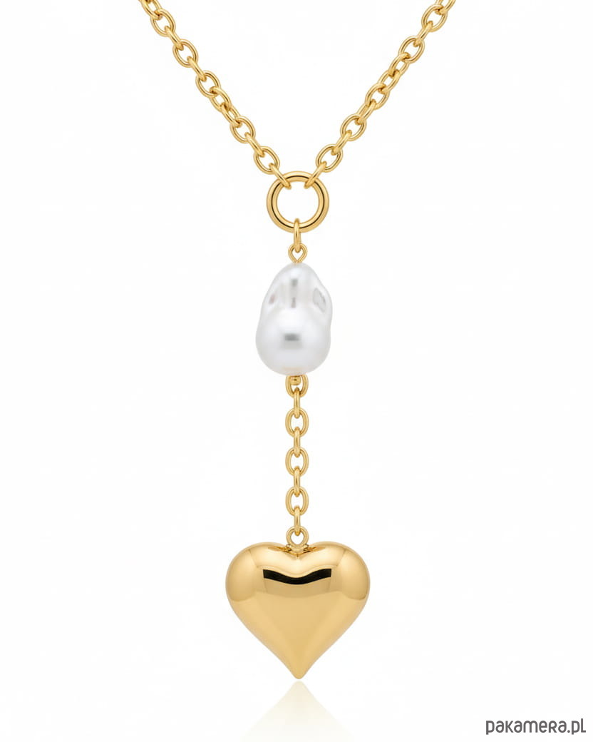 Złoty naszyjnik z sercem i imitacją perły ze stali chirurgicznej premium Para