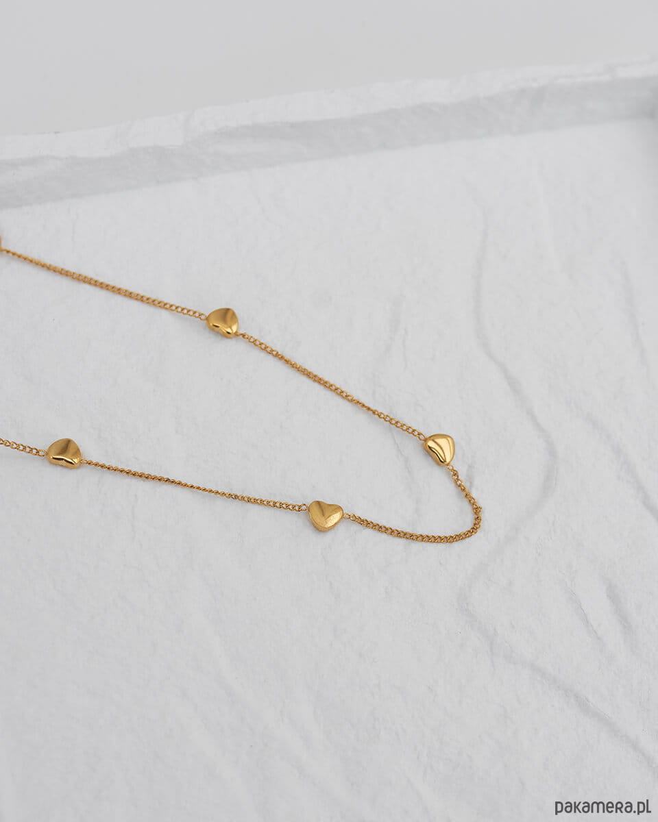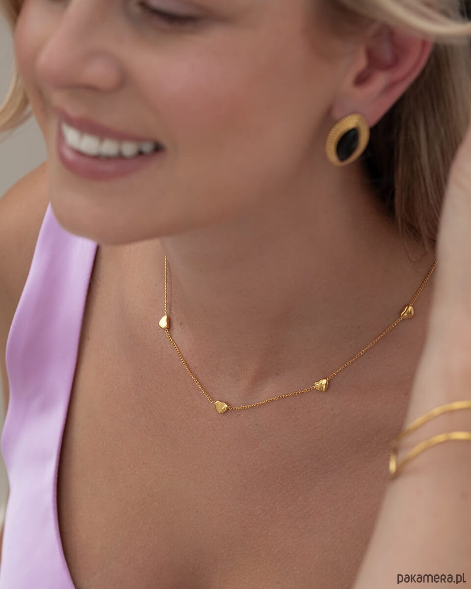 Złoty naszyjnik z serduszkami ze stali chirurgicznej pozłacany 18k złotem