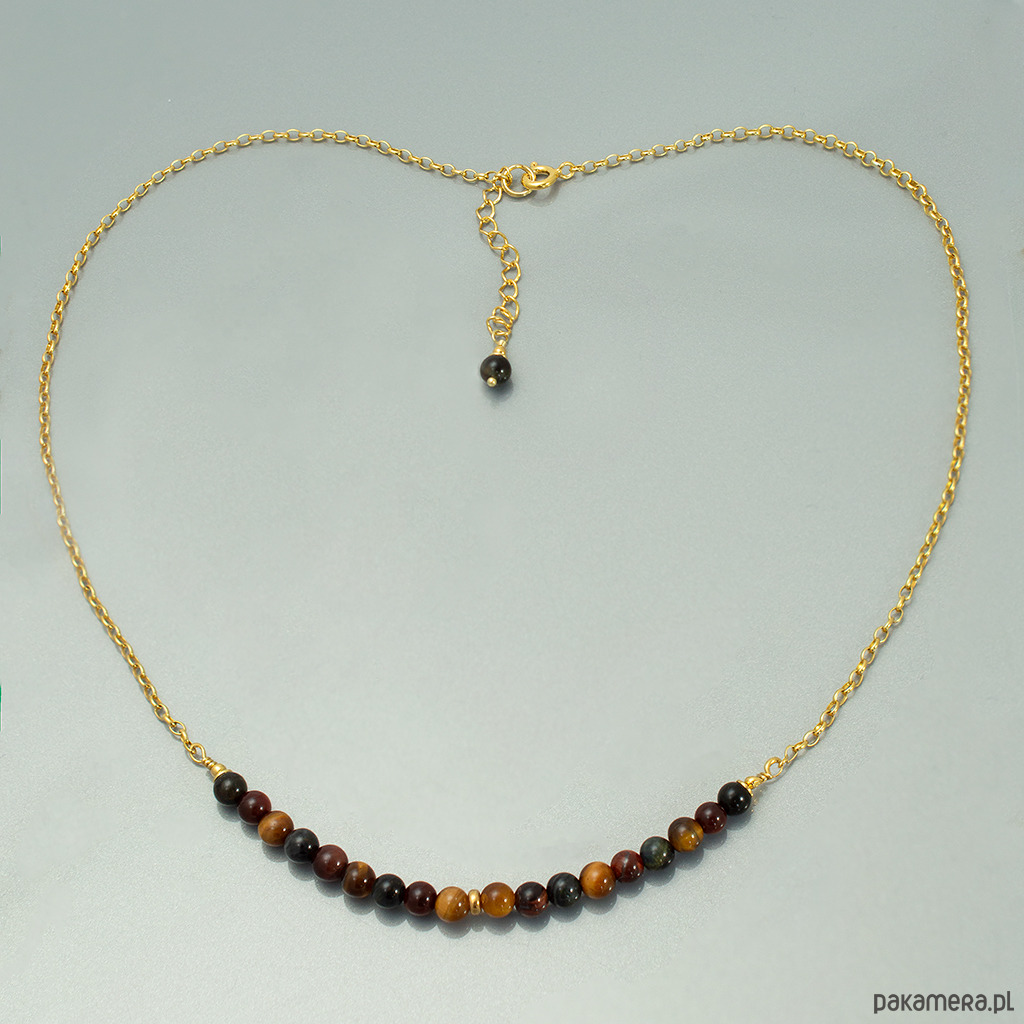 Złoty naszyjnik z tygrysim okiem, pozłacane srebro 925