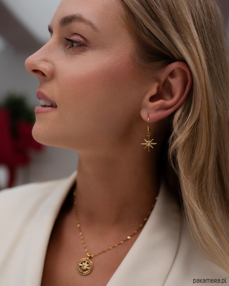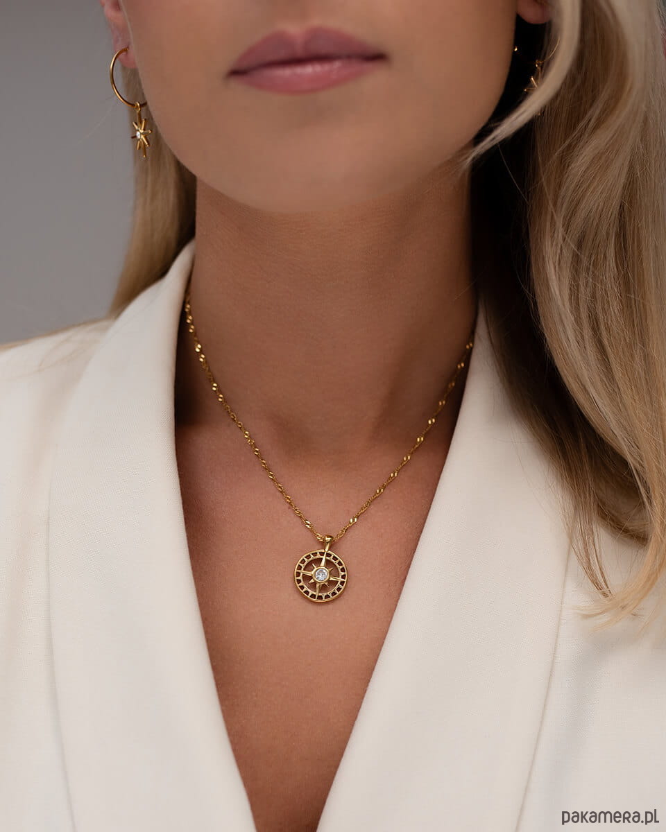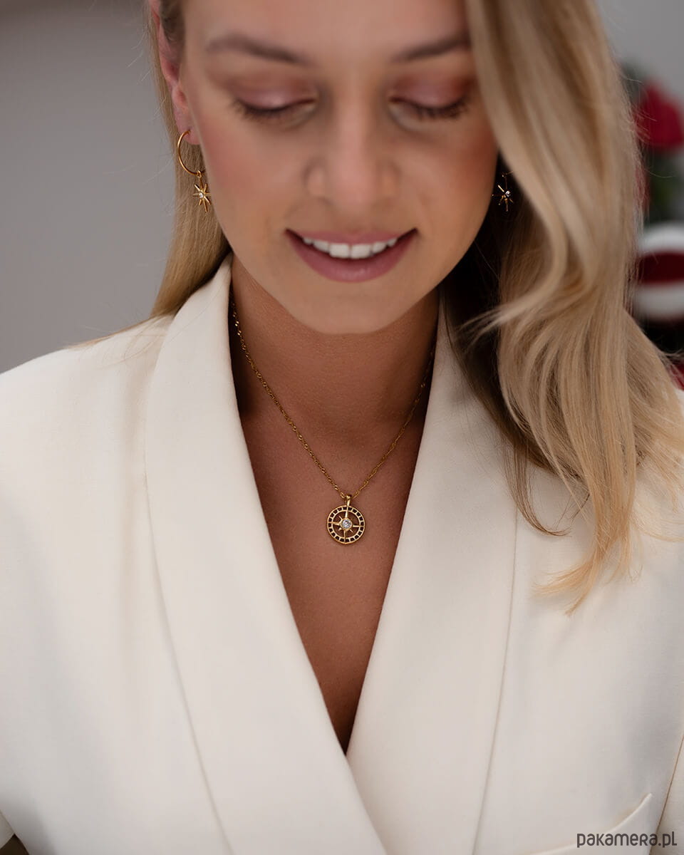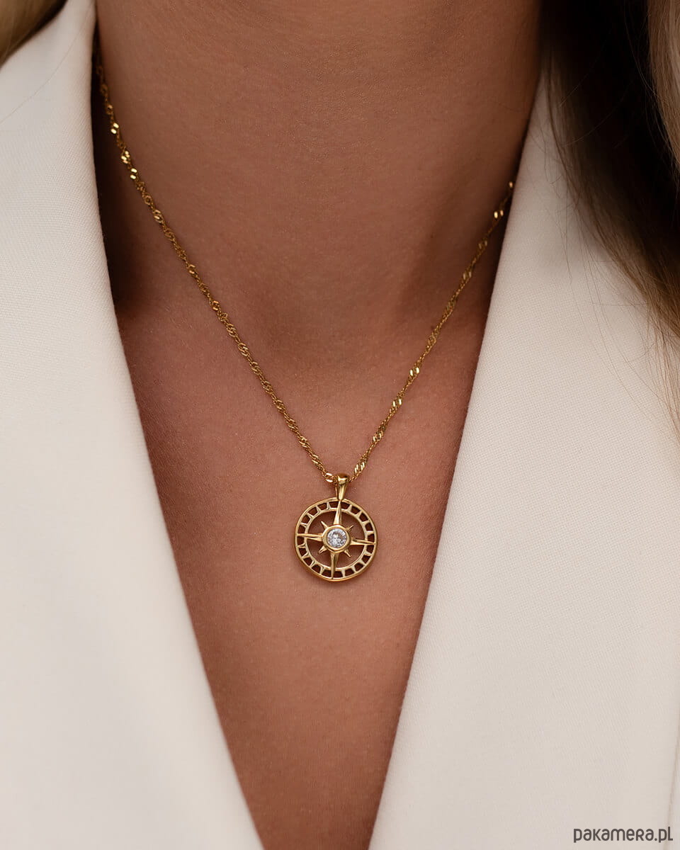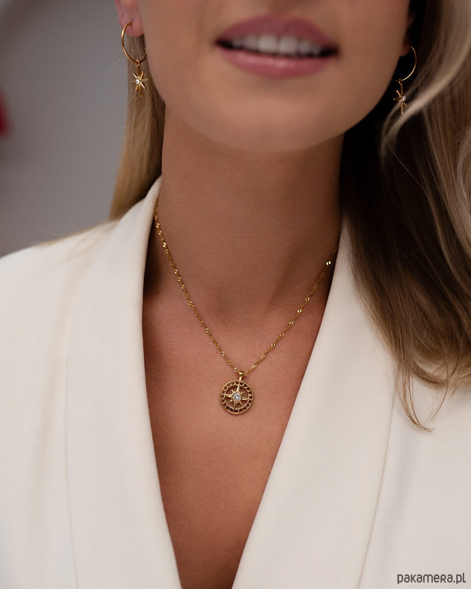 Złoty naszyjnik z wisiorkiem róża wiatrów ze stali chirurgicznej