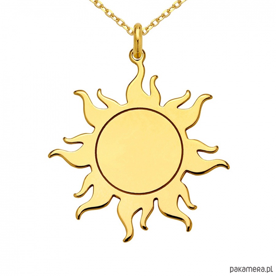 Długi złoty naszyjnik ze słońcem