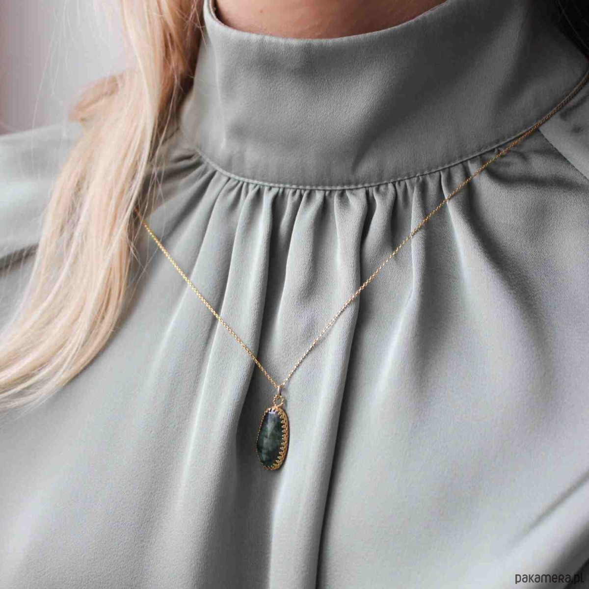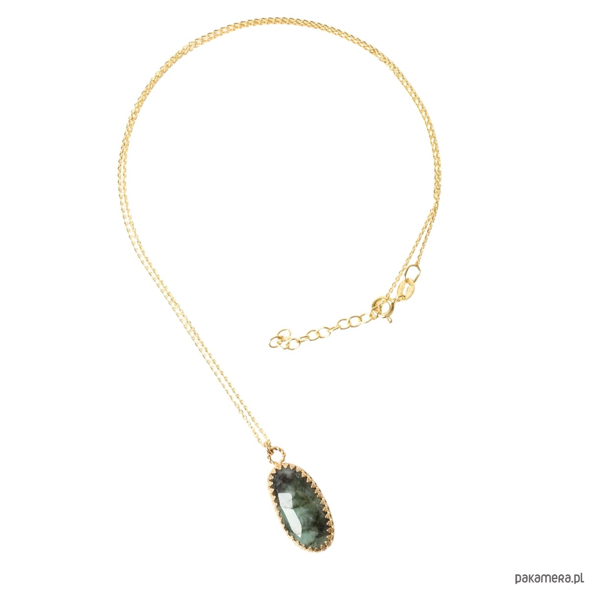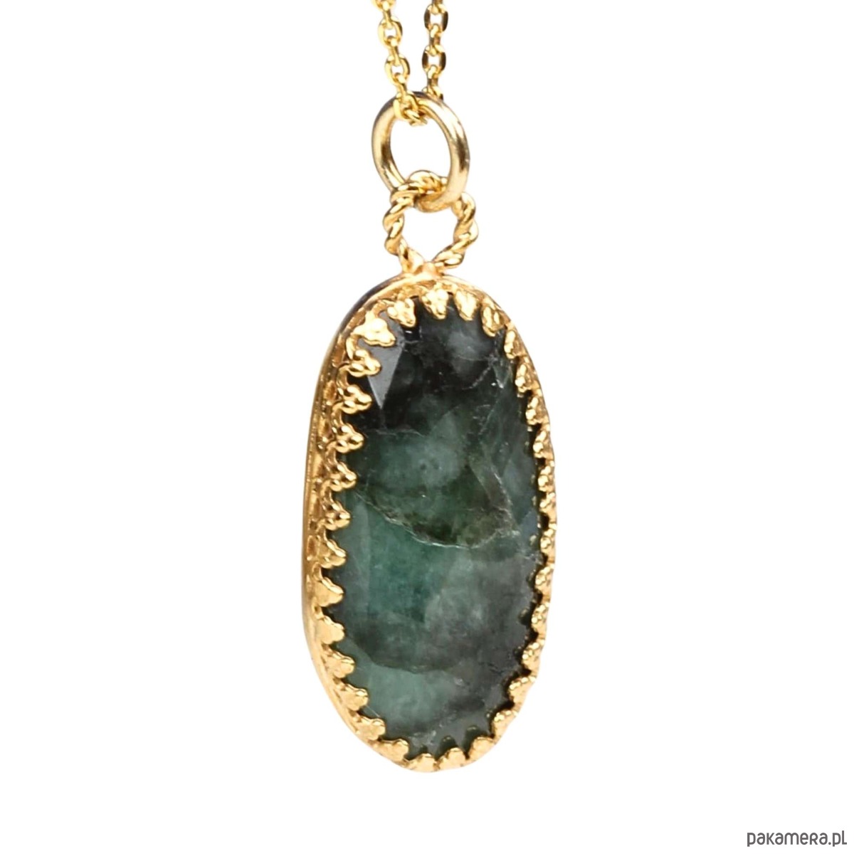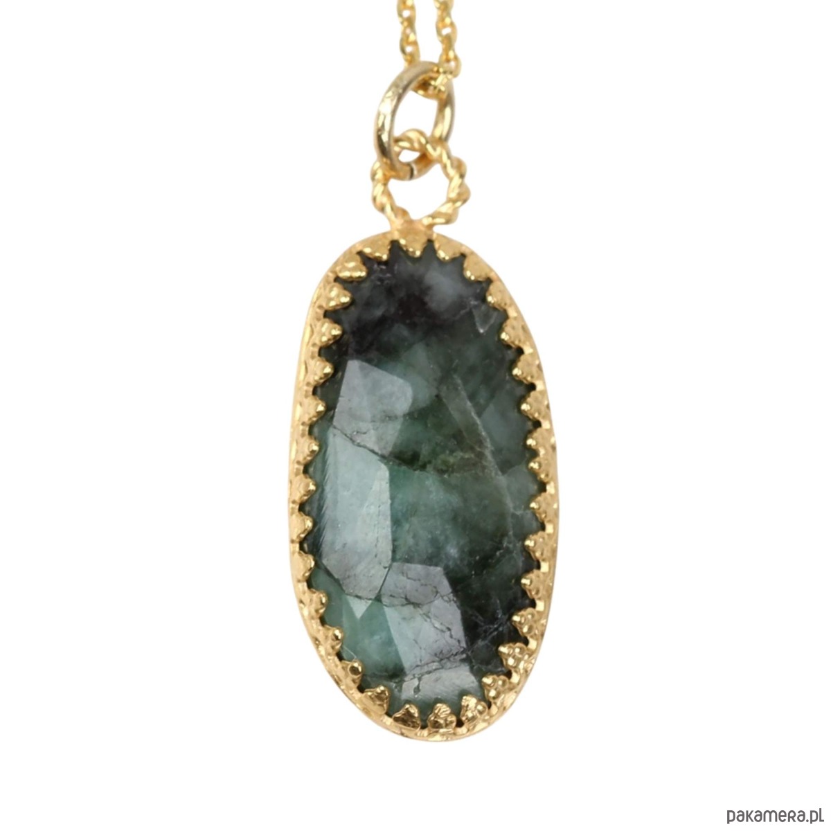Ręcznie wykonany naszyjnik ze szmaragdem w ozdobnym okuciu ze srebra pokrytego 24 karatową warstwą złota