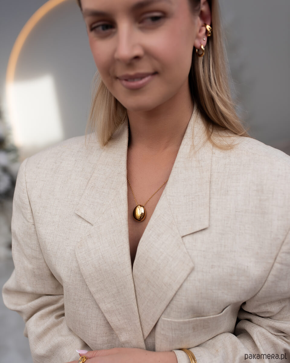 Paraiso Nyxa to minimalistyczny naszyjnik wykonany z wysokiej jakości stali chirurgicznej premium, dostępny w dwóch wersjach kolorystycznych - srebrnej i złotej. Główną ozdobę stanowi geometryczny wisiorek, nadający całości surowego, nowoczesnego charakteru. Ten model doskonale sprawdzi się jako dodatek do codziennych stylizacji w stylu basic, casual, a nawet formal - zwłaszcza z marynarką lub białą koszulą.Długość łańcuszka to 45,5 cm + 5,5 cm regulacji, dzięki czemu można dopasować go do różnych dekoltów. Sam wisiorek ma 1,9 cm wysokości i 0,8 cm szerokości. To rozmiar, który jest widoczny, ale nie przytłaczający - idealny, by podkreślić szyję bez dominowania całej stylizacji. Całość waży 7 g, co sprawia, że naszyjnik jest wyczuwalny, ale bardzo komfortowy w noszeniu.Wybierając Paraiso Nyxa:– stawiasz na stal chirurgiczną, która nie ciemnieje, nie ściera się i nie uczula– możesz nosić naszyjnik codziennie, również pod prysznicem czy na treningu - bez ryzyka utraty koloru– zyskujesz ponadczasowy dodatek pasujący do większości ubrań - od t-shirtu po marynarkę