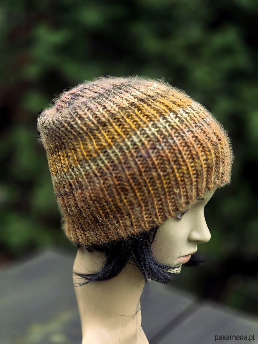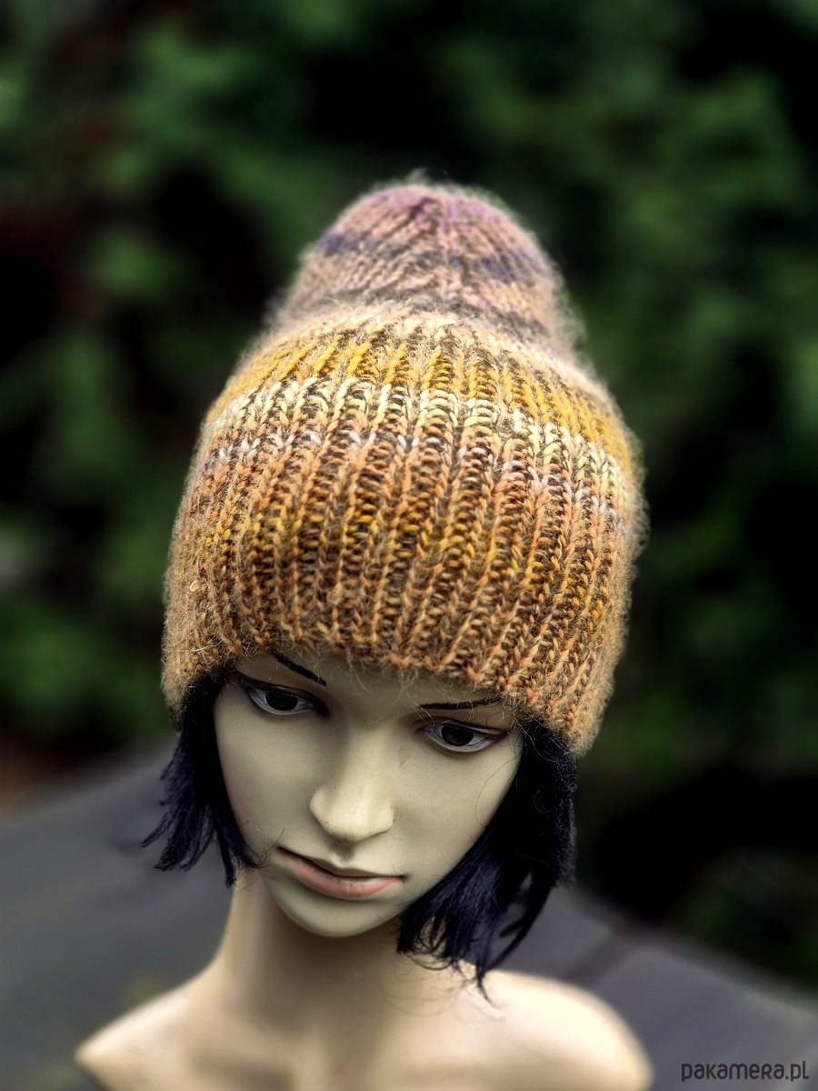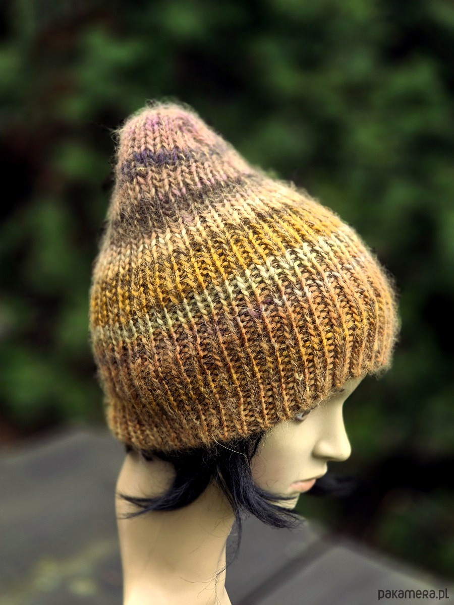 Ciepła, mięsista, miękka i cudowna w dotyku czapka wykonana ręcznie na drutach. Połączyłam cieniutką nitkę 75% kid moher/25% jedwab z włoską kolorową włóczka (25% wełna dziewicza, 75% akryl). Czapka bezszwowa, świetnie dopasowuje się do głowy.