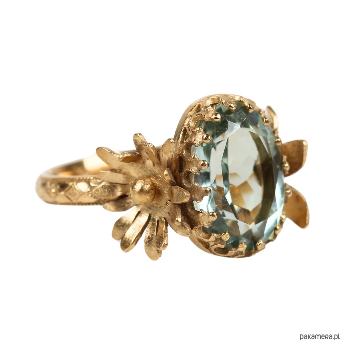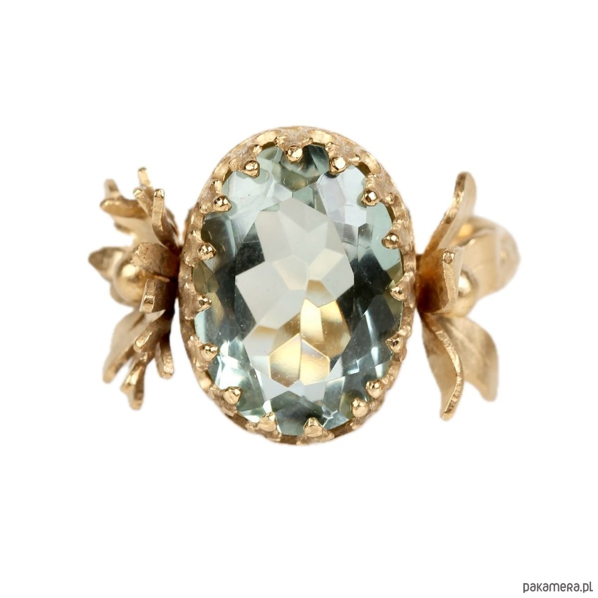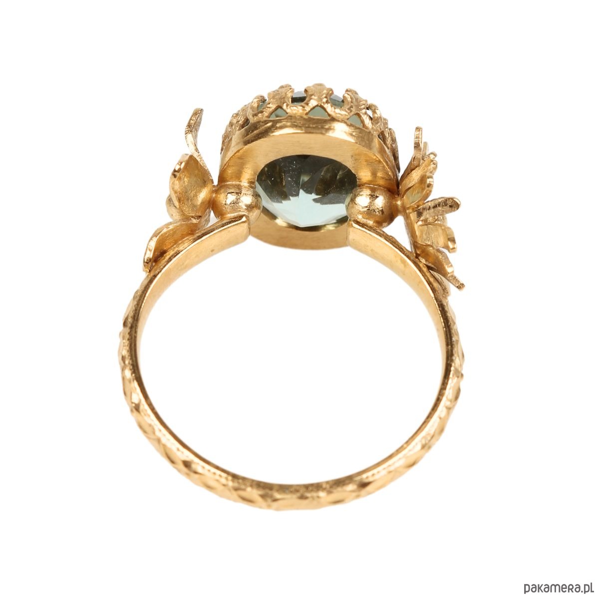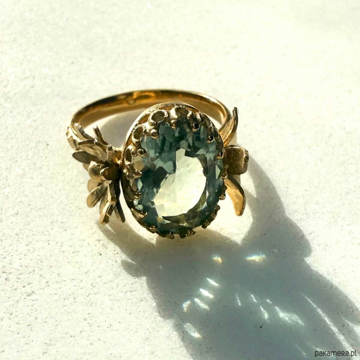 Złoty pierścionek Gardenia z zielonym ametystem r.16
