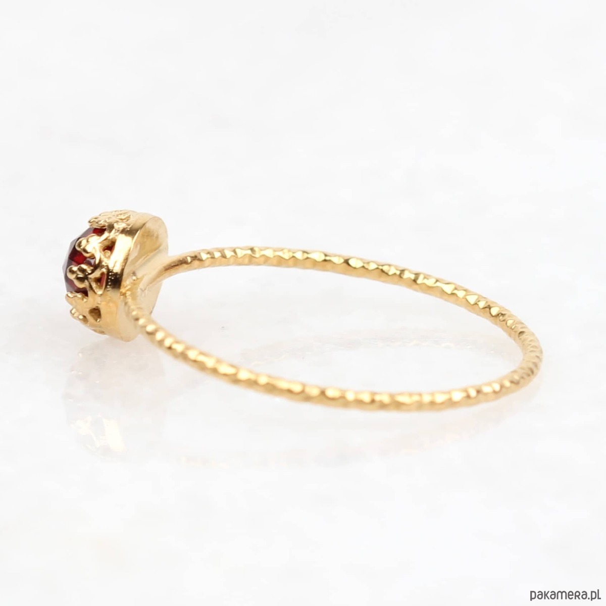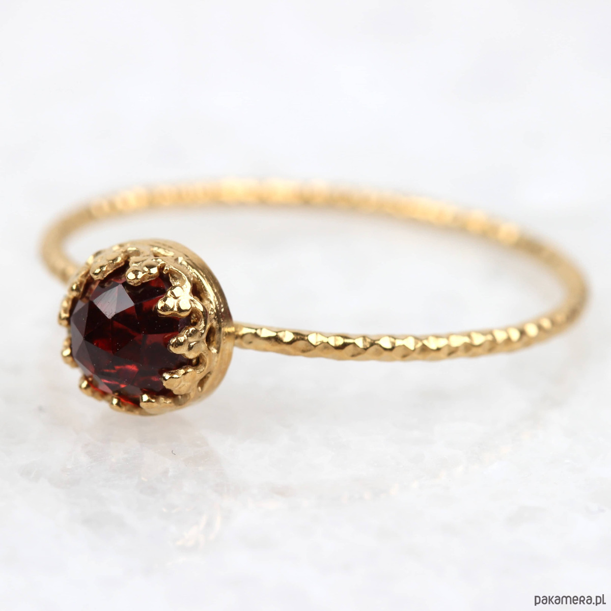 Złoty pierścionek Petite z granatem w stylu Vintage r.12