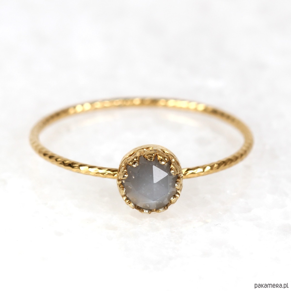 Złoty pierścionek Petite z szarym kamieniem księżycowym