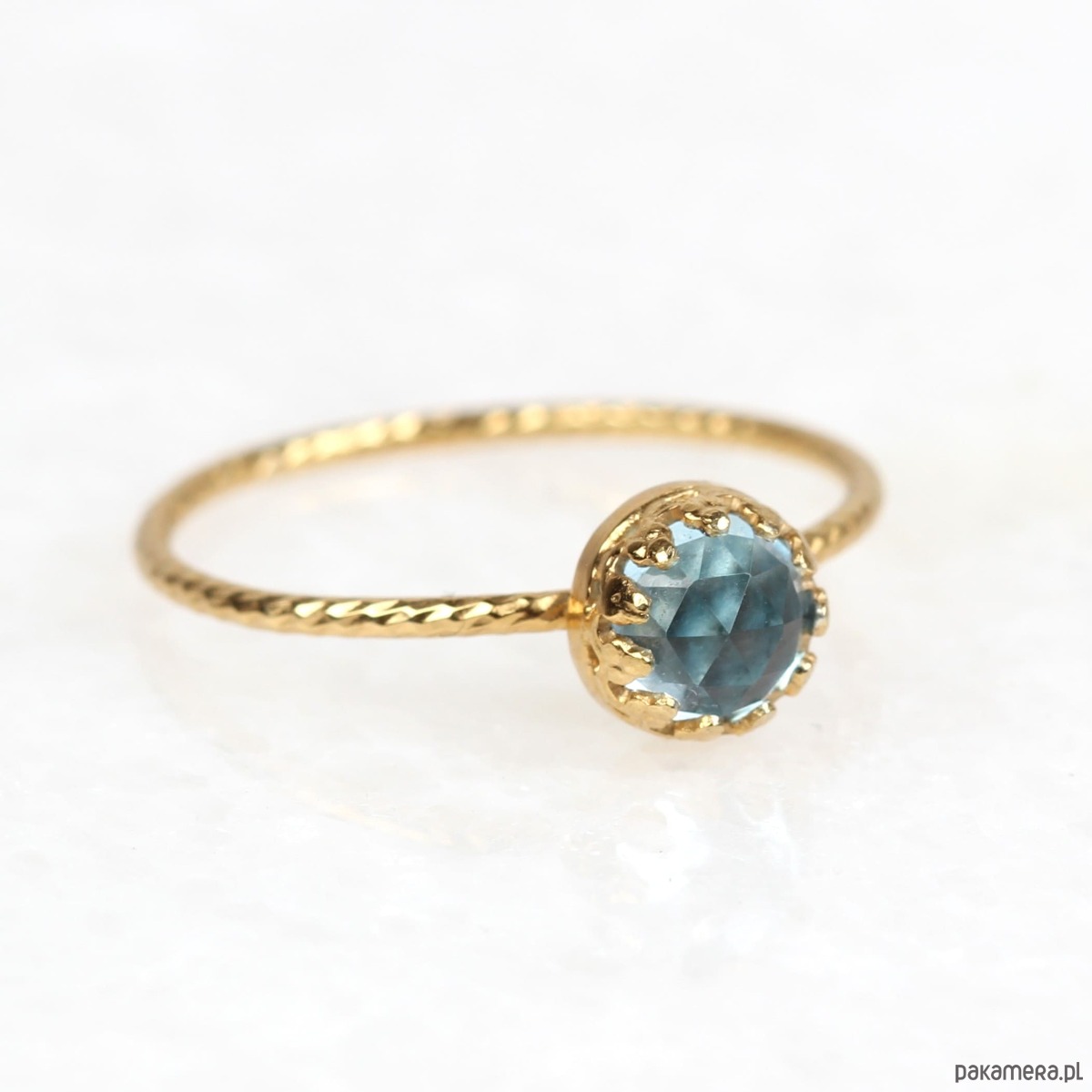 Złoty pierścionek Petite z topazem Sky Blue r. 14