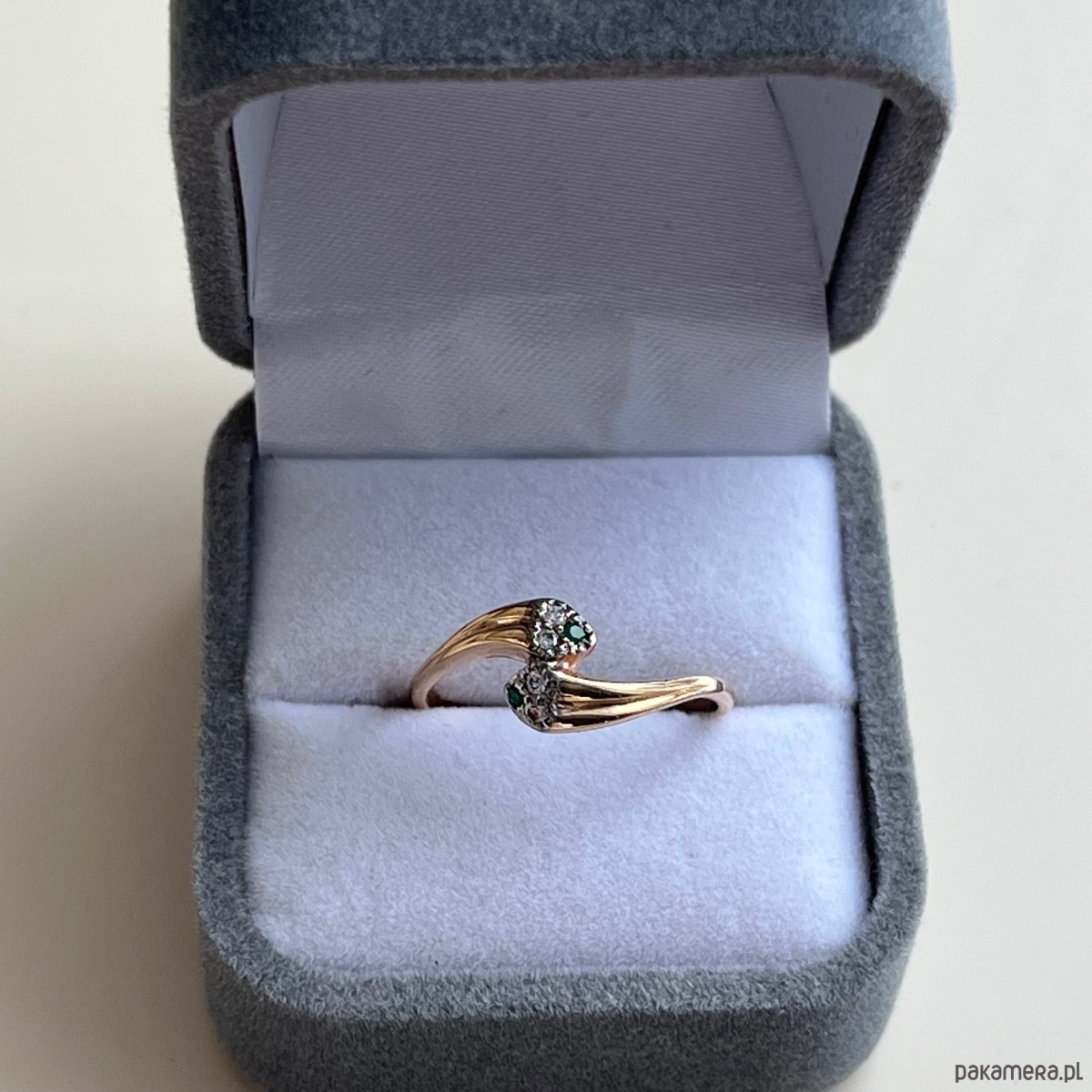 Pierścionek został sprawdzony przez naszego rzeczoznawce - gemmologa - eksperta od biżuterii i kamieni szlachetnych. Został lekko odnowiony - stan bdb