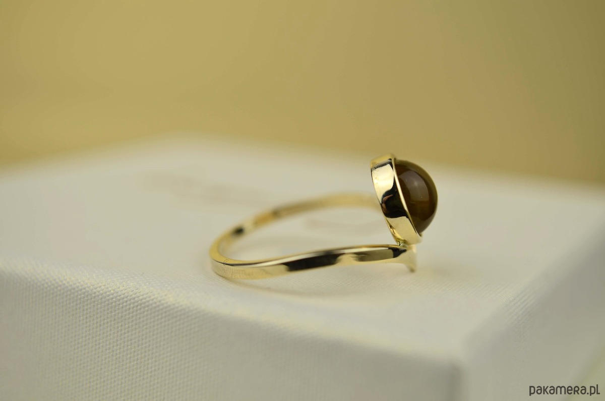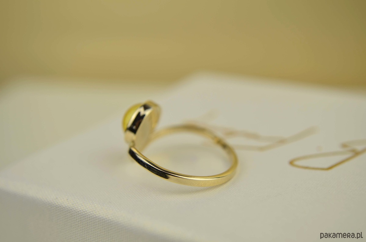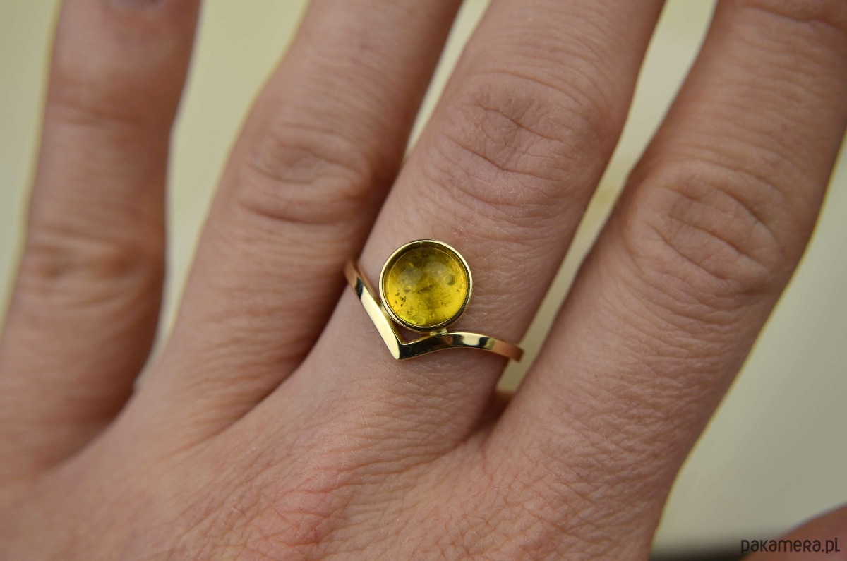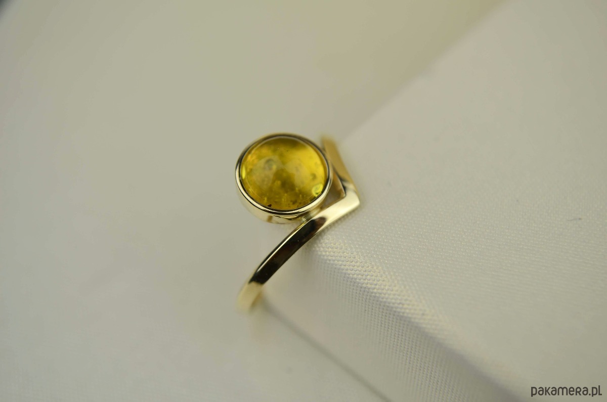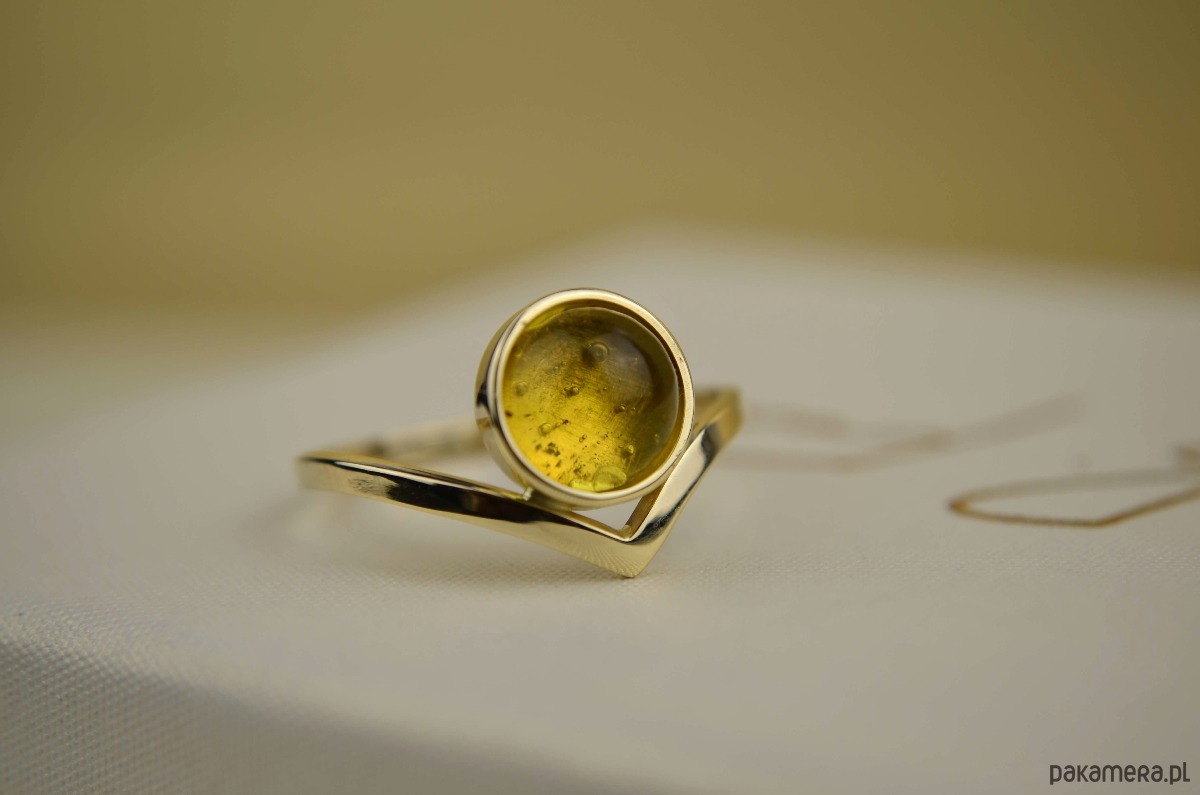 Złoty pierścionek z bursztynem pr. 585