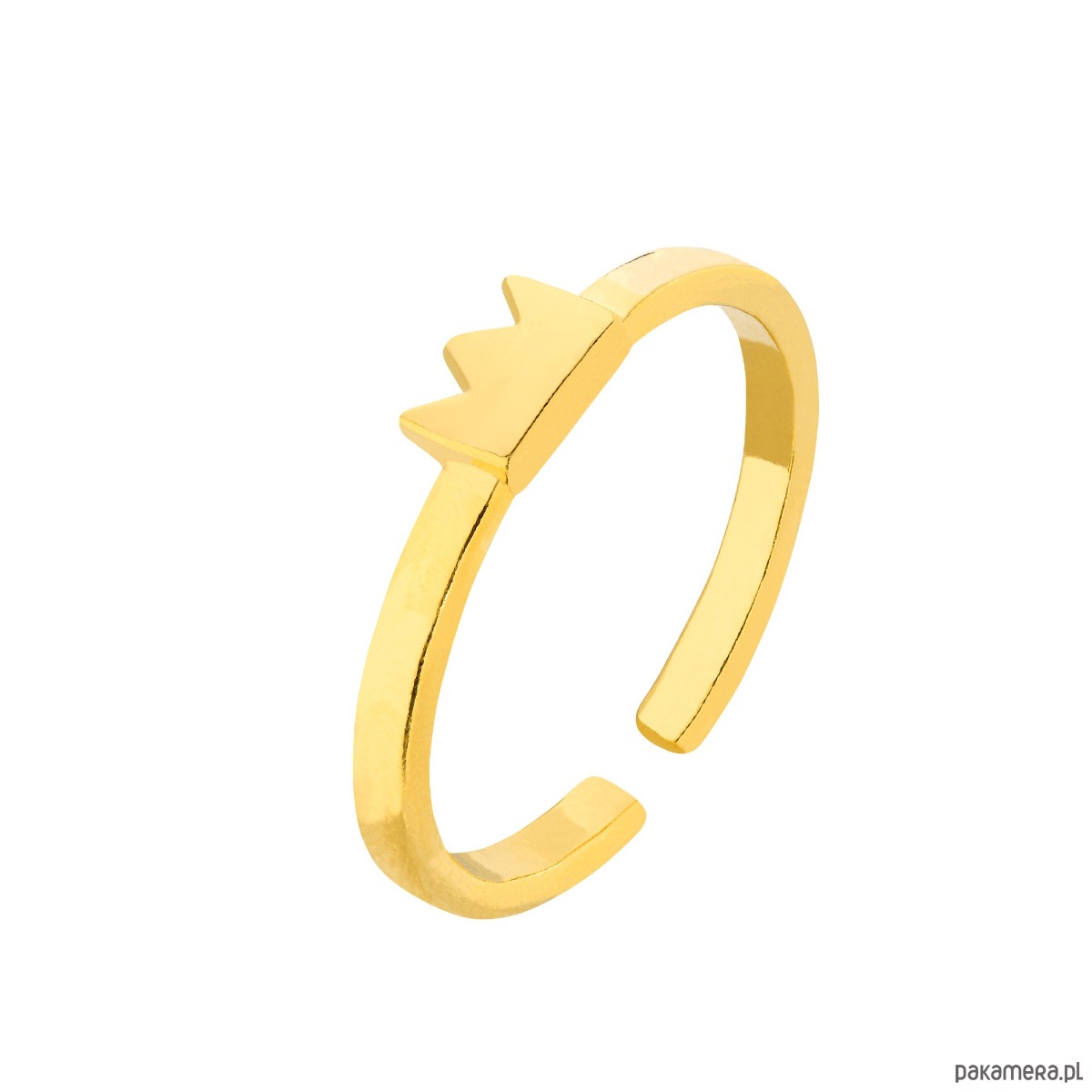 Złoty pierścionek zdobiony koroną. Wszystkie elementy wykonane ze srebra 925 powlekanego 24 karatowym żółtym złotem.