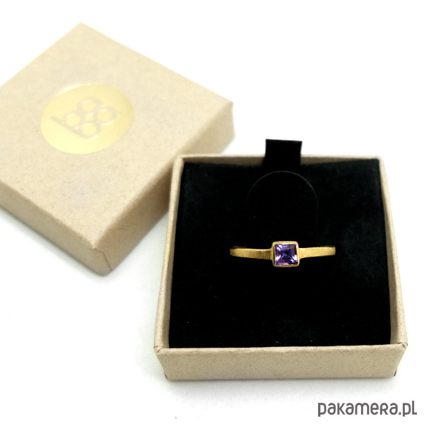 Złoty pierścionek z kwadratowym ametystem