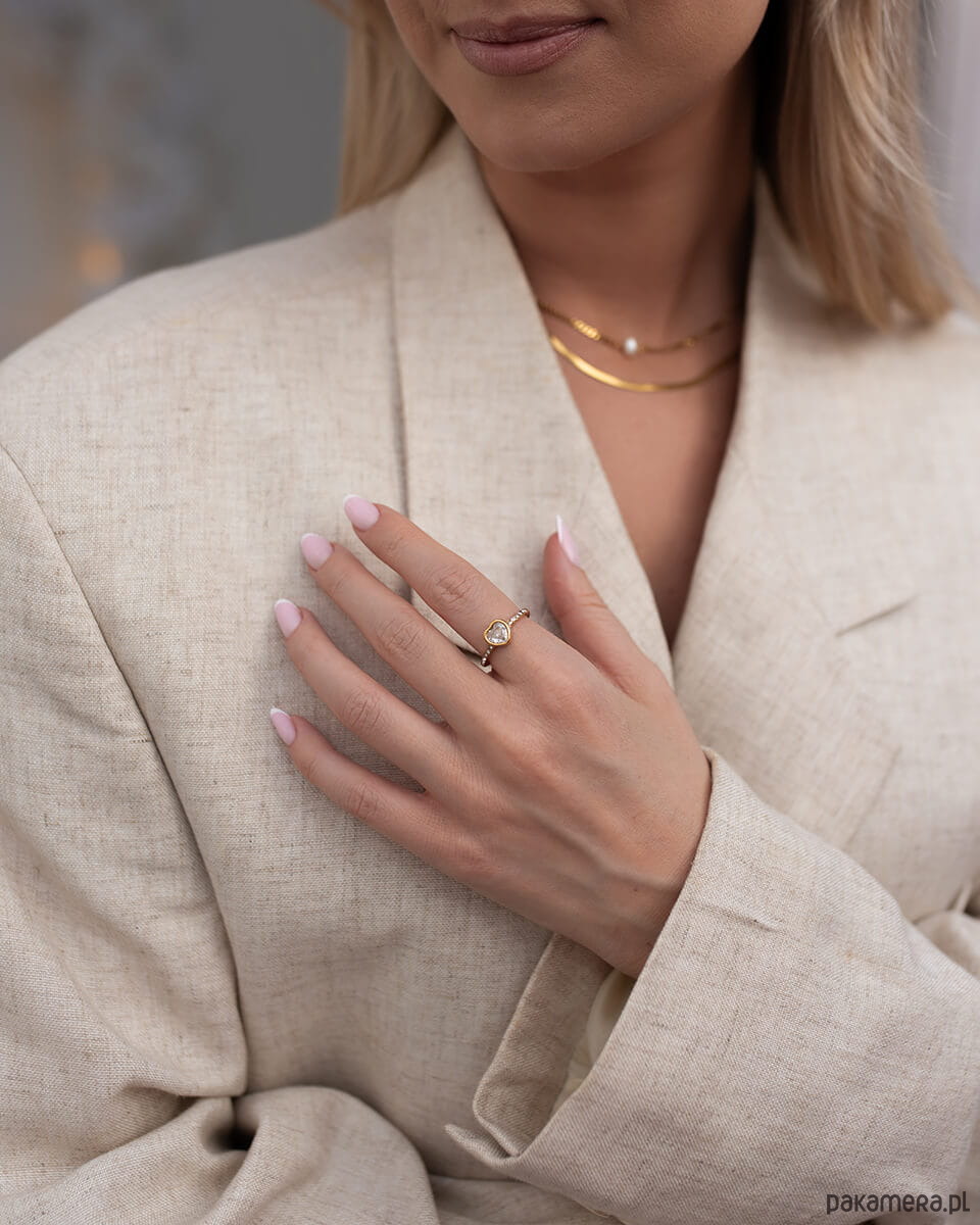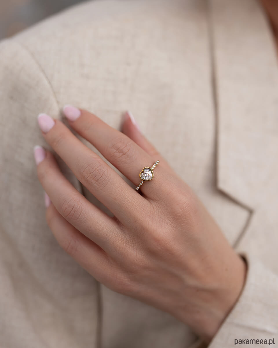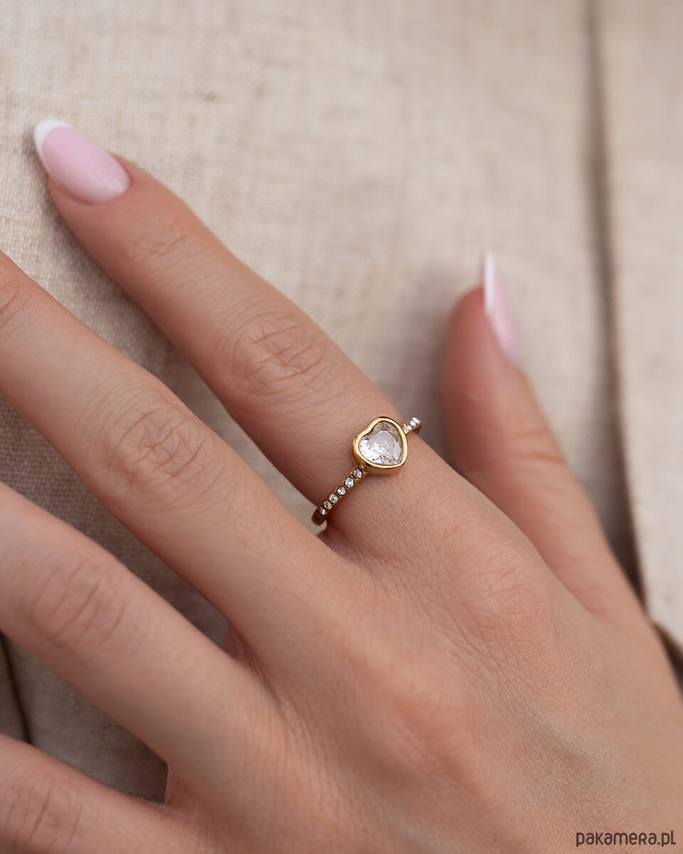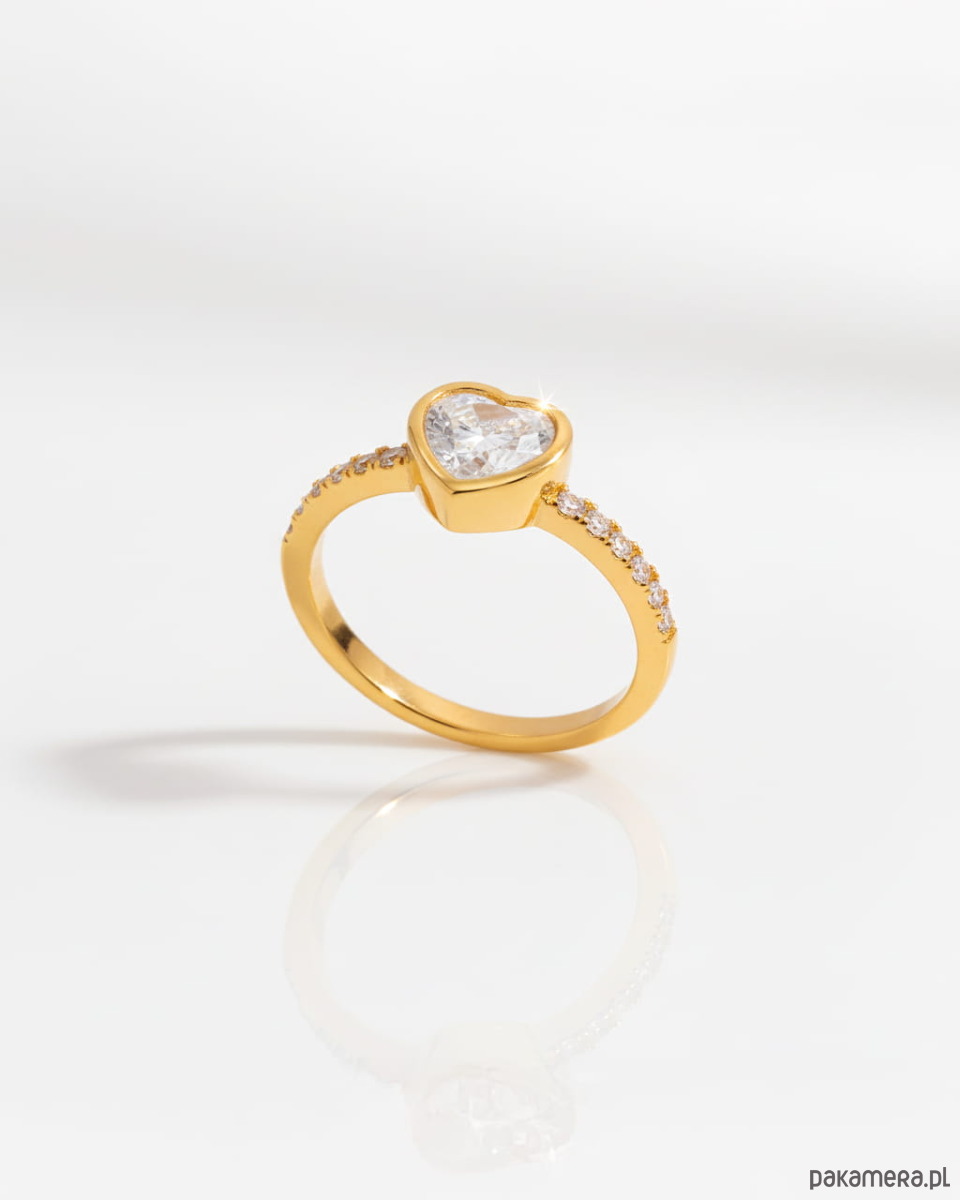 Złoty pierścionek z sercem i cyrkoniami ze stali chirurgicznej premium Parais
