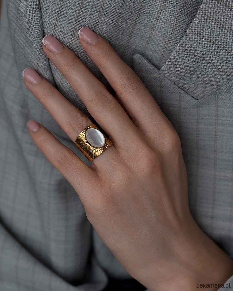 Dzięki 18-karatowej powłoce złotem, biżuteria prezentuje się luksusowo i szlachetnie, nadając Twojej stylizacji niepowtarzalny charakter. Złoty kolor pięknie komponuje się zarówno z letnimi kreacjami, jak i wieczorowymi strojami, sprawiając, że pierścionek jest uniwersalnym dodatkiem do Twojej kolekcji. Wodoodporność oraz hipoalergiczność to dodatkowe atuty tego wyjątkowego pierścionka, który będzie idealnym wyborem na wiele okazji.