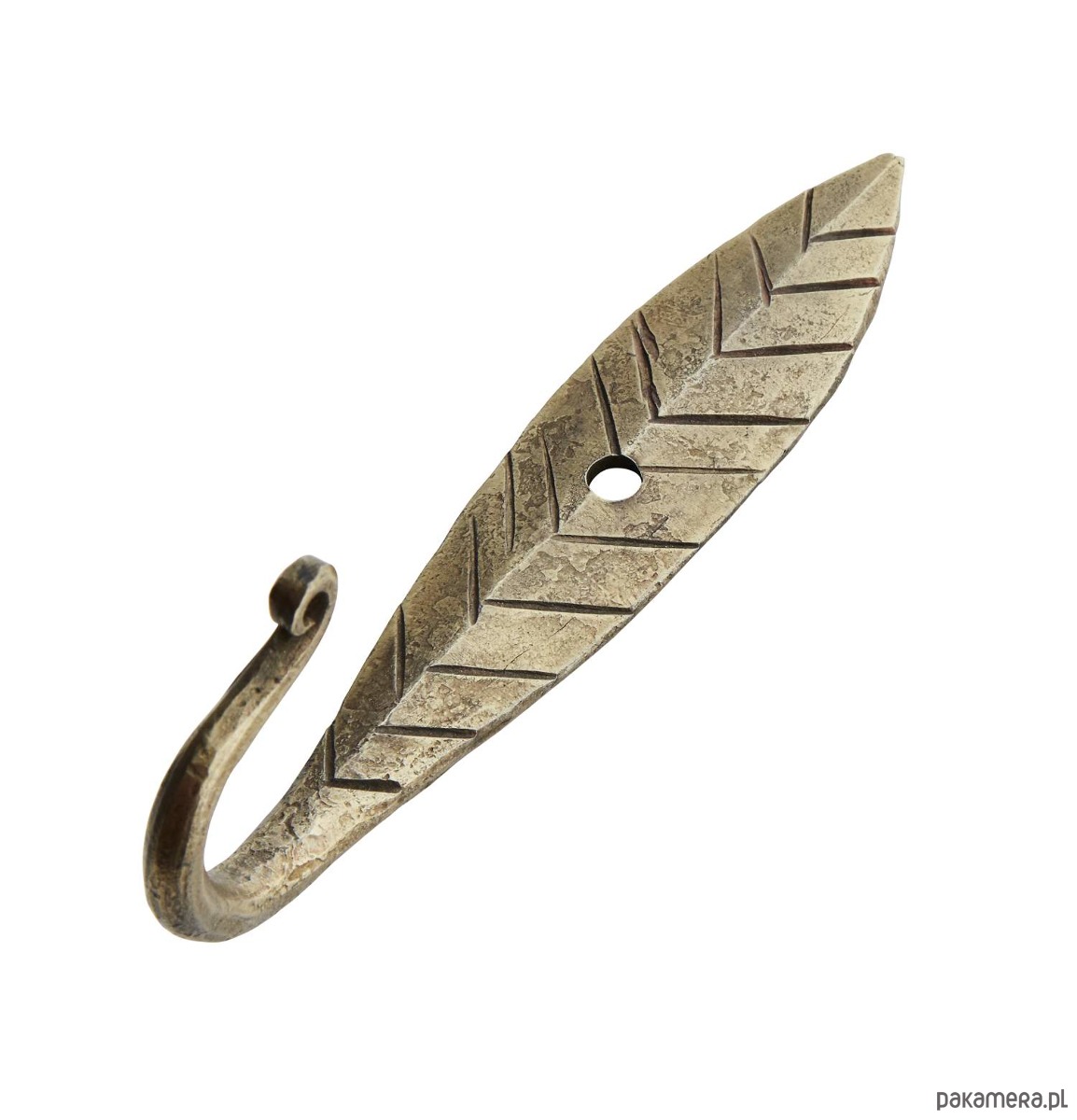 Wieszak ścienny w kształcie liścia odnajdzie się w wielu wnętrzach od minimalistycznego aż po boho. Wykończenie w modnym kolorze postarzanego mosiądzu. Metal dobrej jakości - ręczne wykonanie. Polecany jako prezent. Wieszak posiada w zestawie śrubę do mocowania.