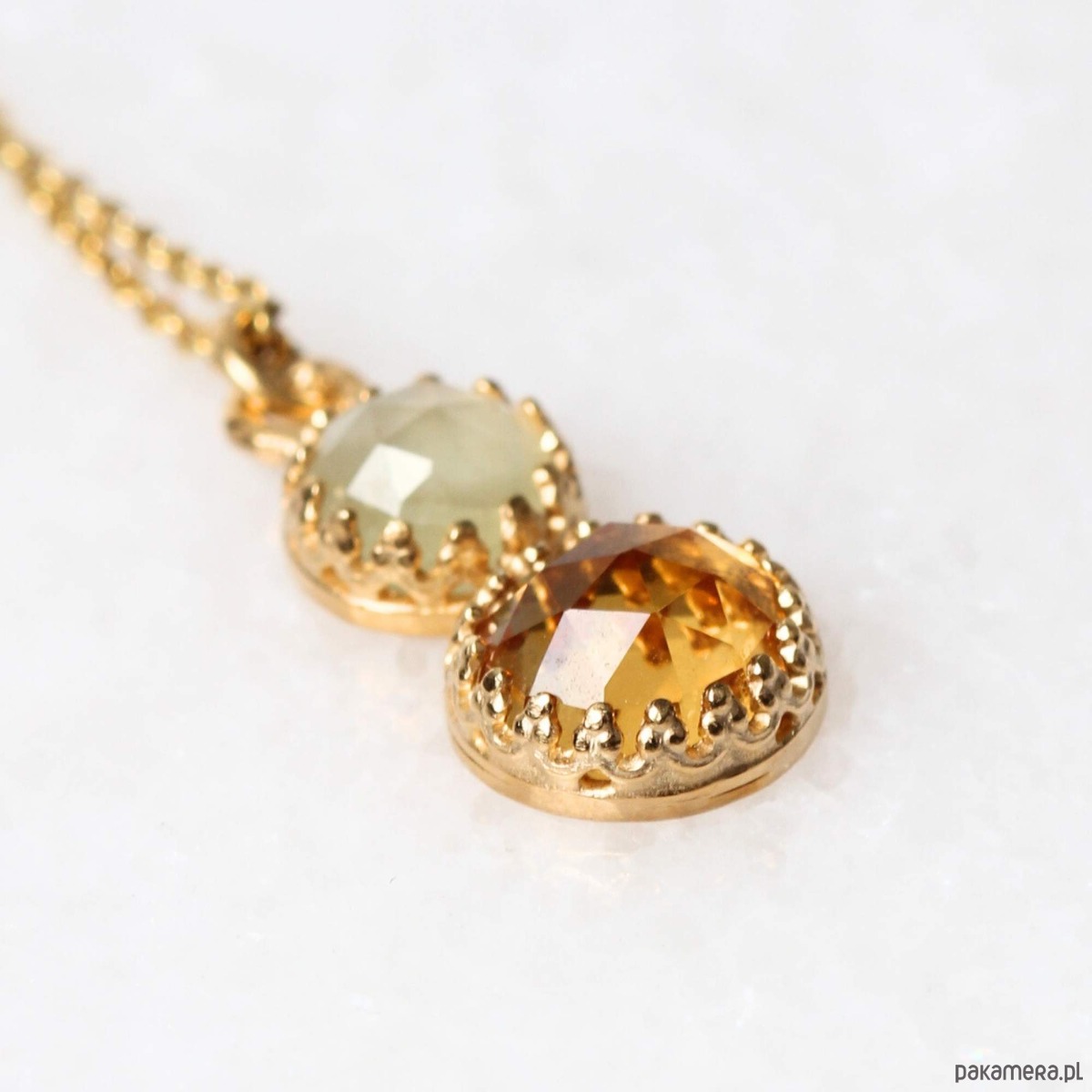 Złoty wisiorek Dream z zielonym prehnitem i cytrynem