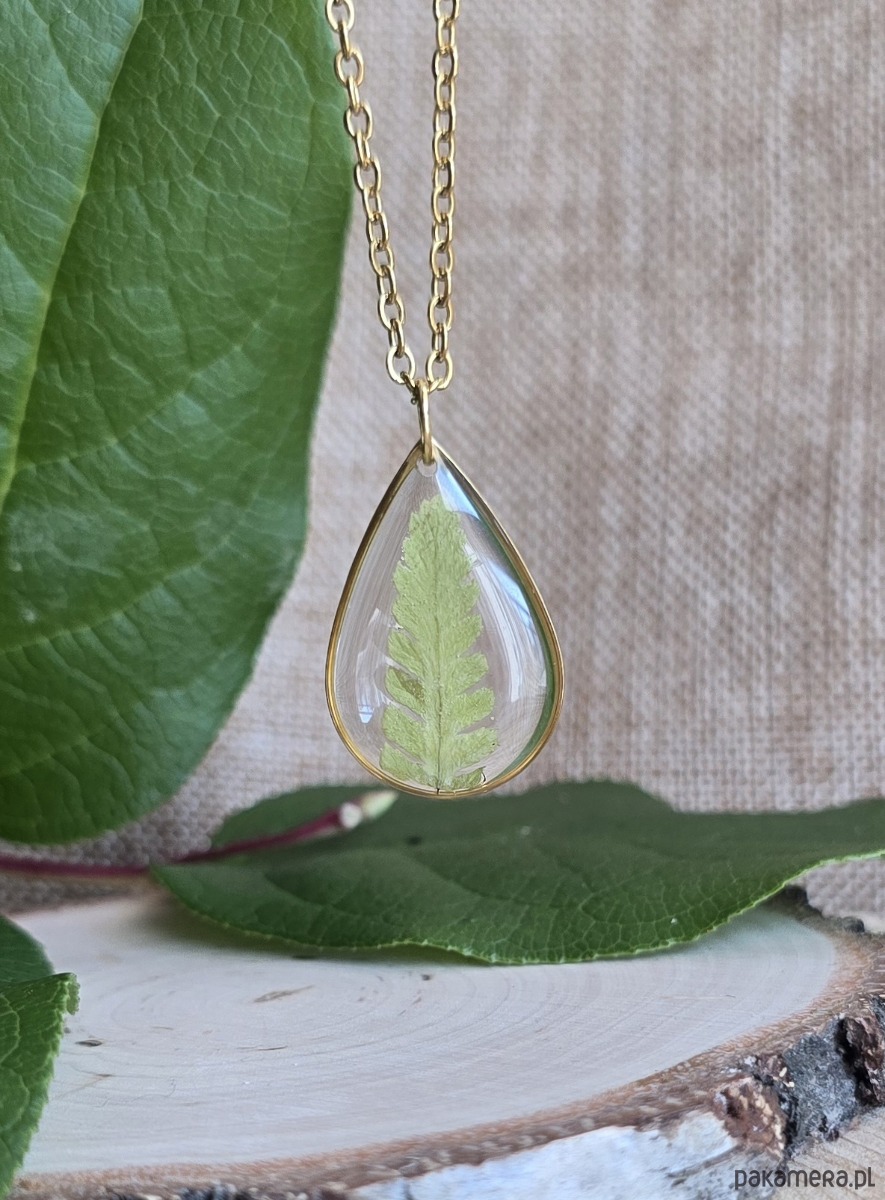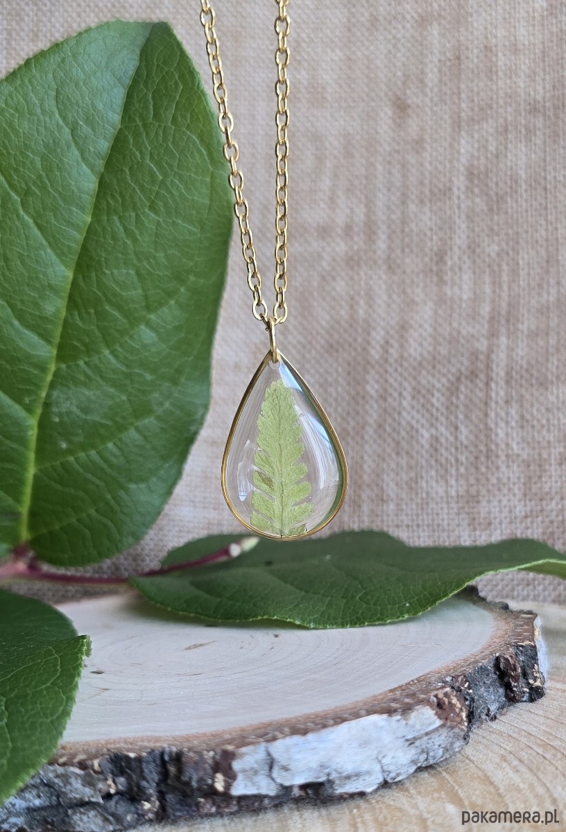 Złoty wisiorek prawdziwe kwiaty paproć