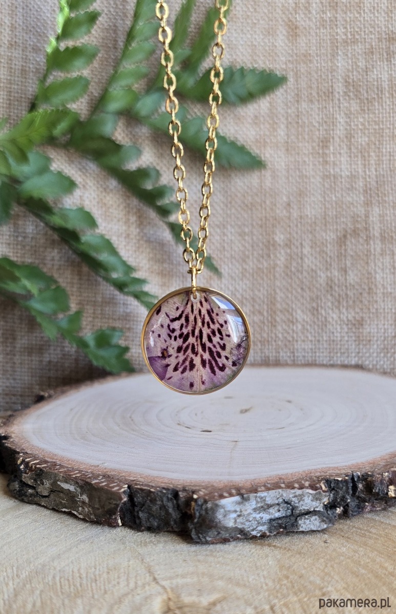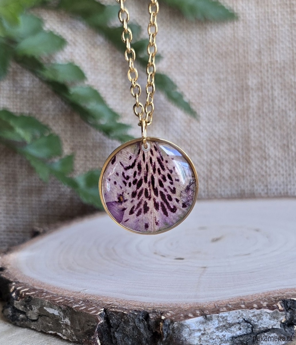 Oferuję Państwu unikalną biżuterię. Zawieszka jest wykonana z suszonych kwiatów i żywicy epoksydowej. Biżuteria jest wspaniałym i oryginalnym prezentem na lata.