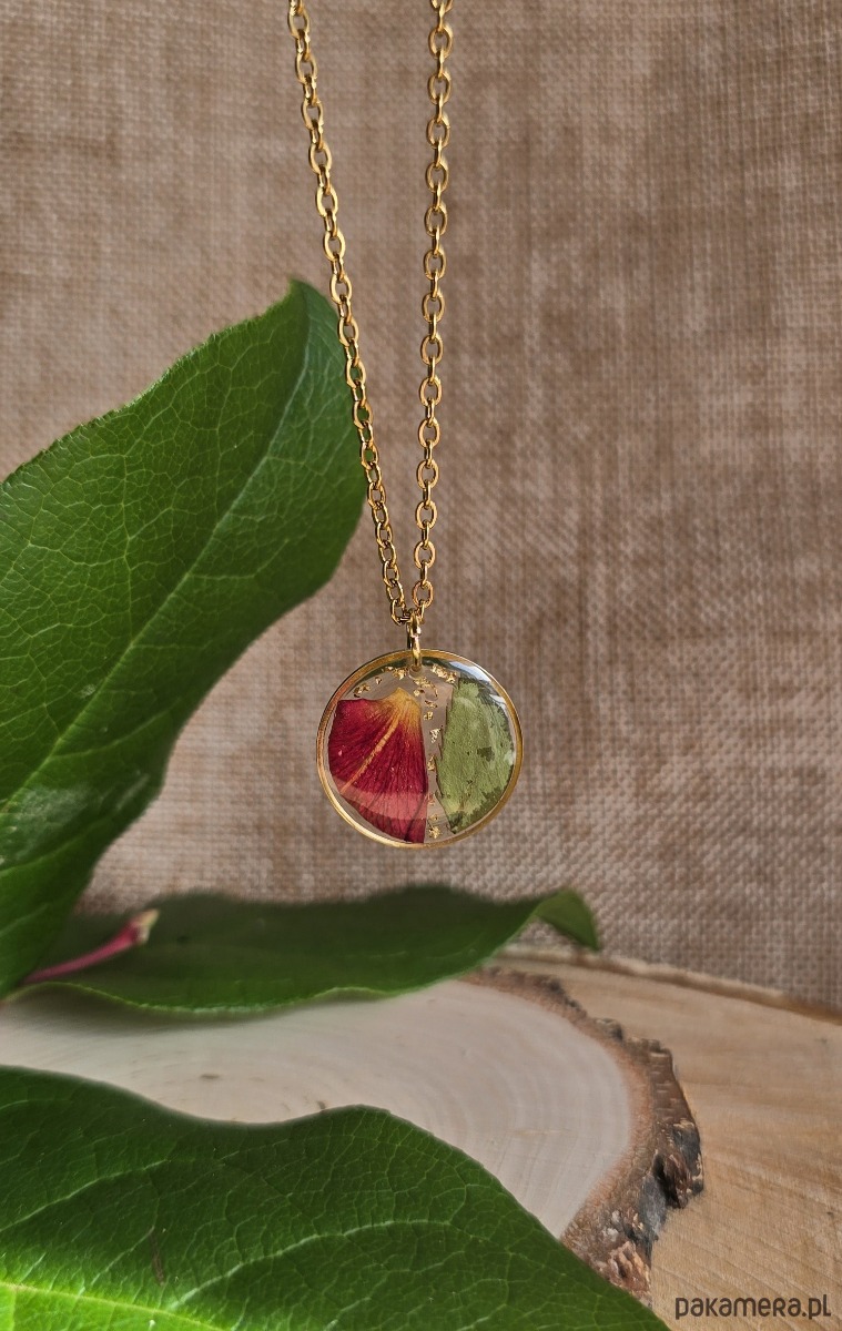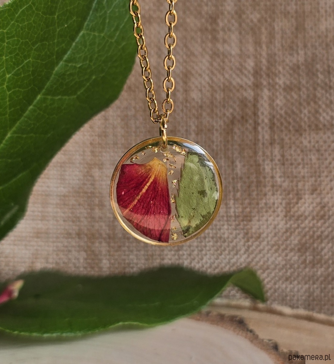 Oferuję Państwu unikalną biżuterię. Zawieszka jest wykonana z suszonych kwiatów i żywicy epoksydowej. Biżuteria jest wspaniałym i oryginalnym prezentem na lata.