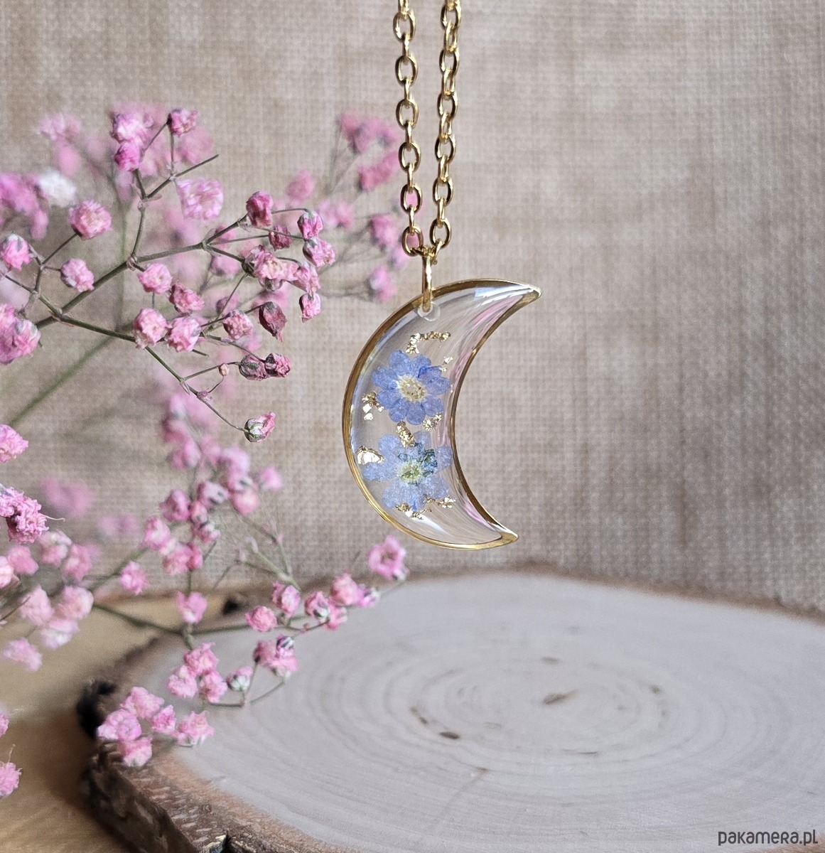 Oferuję Państwu unikalną biżuterię. Zawieszka jest wykonana z suszonych kwiatów i żywicy epoksydowej. Biżuteria jest wspaniałym i oryginalnym prezentem na lata.