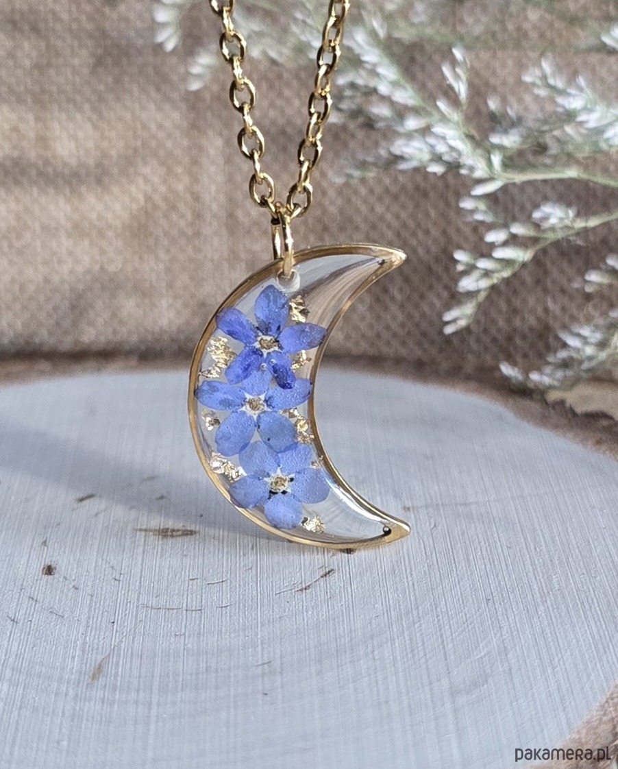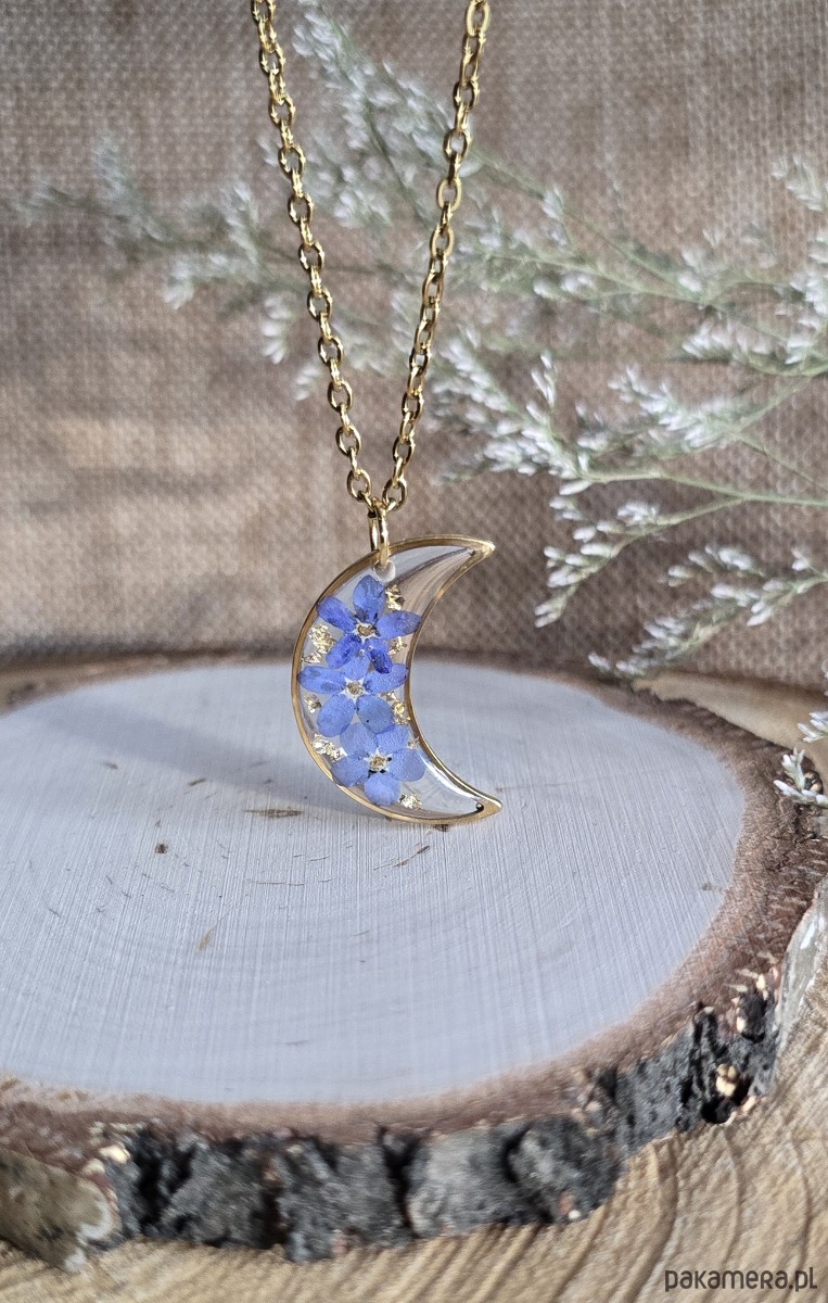 Oferuję Państwu unikalną biżuterię. Zawieszka jest wykonana z suszonych kwiatów i żywicy epoksydowej. Biżuteria jest wspaniałym i oryginalnym prezentem na lata.