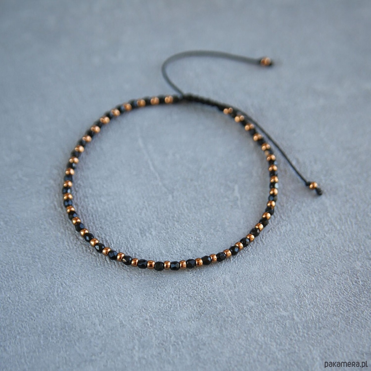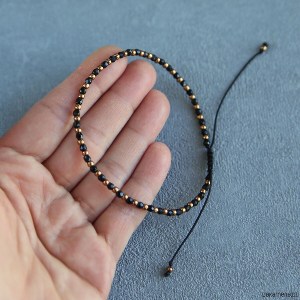 Bazą bransoletki jest bardzo mocny sznurek z wiązaniem, które umożliwia regulowanie obwodu.