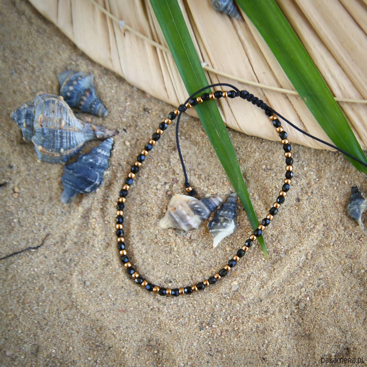 Złoty/czarny na kostkę, bransoletka na nogę