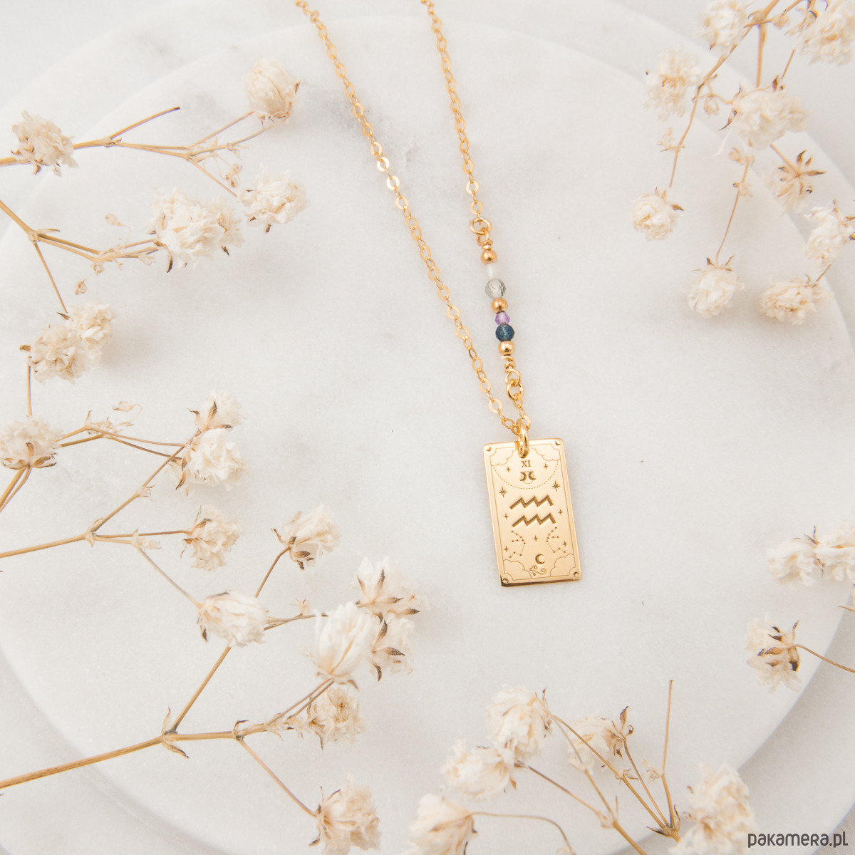 W astrologii wyróżniany 12 znaków zodiaku, które odpowiadają układom gwiazd na niebie w dniach urodzenia każdego z nas. Każdemu znakowi zodiaku przypisuje się specyficzne cechy charakteru, słabe i mocne strony, osobowość czy predyspozycje. Każdy ma swój szczęśliwy kamień i kolor. Biżuteria ze znakiem zodiaku to idealny prezent dla bliskiej Ci osoby, przyniesie szczęścia i ochronę na co dzień. Naszyjnik ma dołączone kamienie zodiakalne dla wodnika.