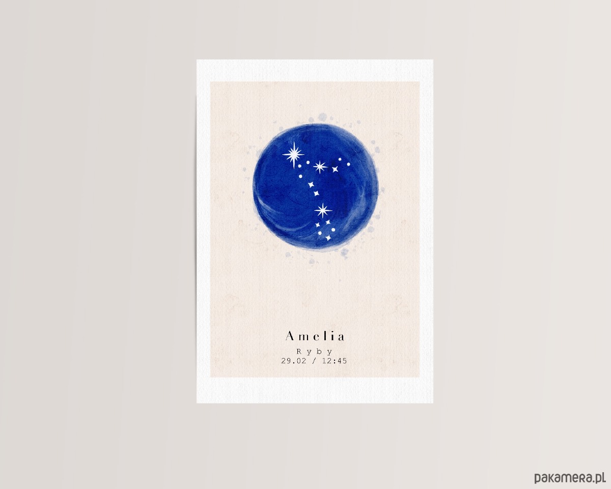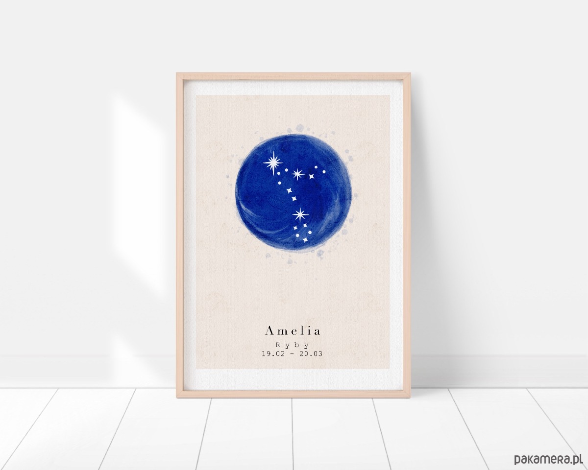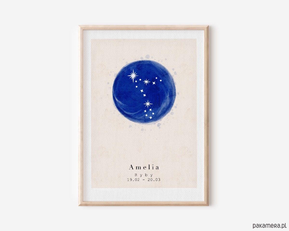 Plakat - Metryczka - Znak zodiaku Ryby/ Pisces - Plakat personalizowany