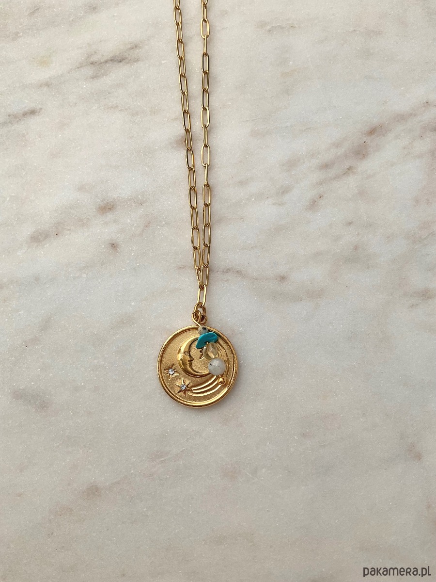 Zawieszka ma wielkość 2 cm, a długość naszyjnika to 41 cm plus dodatkowe 5 cm przedłużenia.