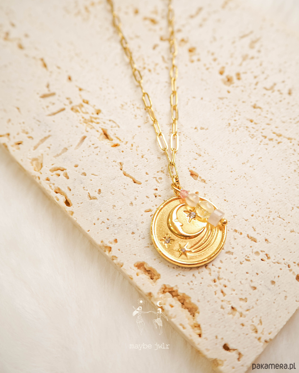 Naszyjnik ma rozmiar uniwersalny dzięki regulacji. Bazą jest modny łańcuszek typu spinacz.