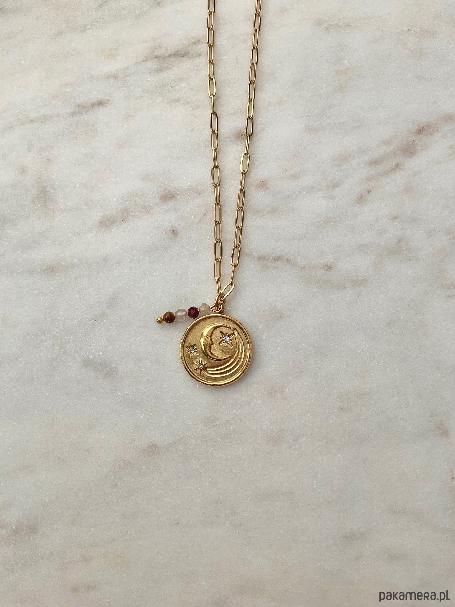 Naszyjnik ma rozmiar uniwersalny dzięki regulacji. Bazą jest modny łańcuszek typu spinacz.
