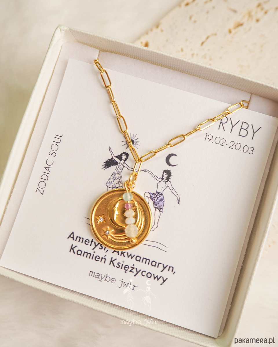 Kamienie dla marzycielskich i empatycznych Ryb. Ametyst koi emocje i wspiera duchowy rozwój, akwamaryn wprowadza spokój, a kamień księżycowy wzmacnia intuicję. Dla dusz żyjących sercem i wyobraźnią.