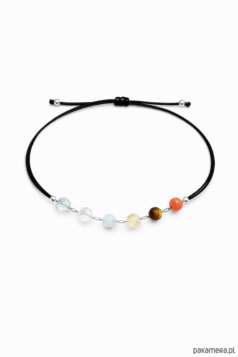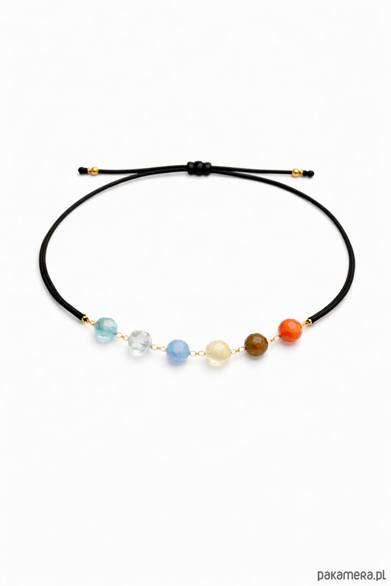 Bransoletka została osadzona na trwałej nici z regulowanym przesuwanym zapięciem, dzięki czemu łatwo dopasowuje się do nadgarstka. Kamienie są fasetowane, subtelnie odbijają światło i zachowują naturalny charakter.