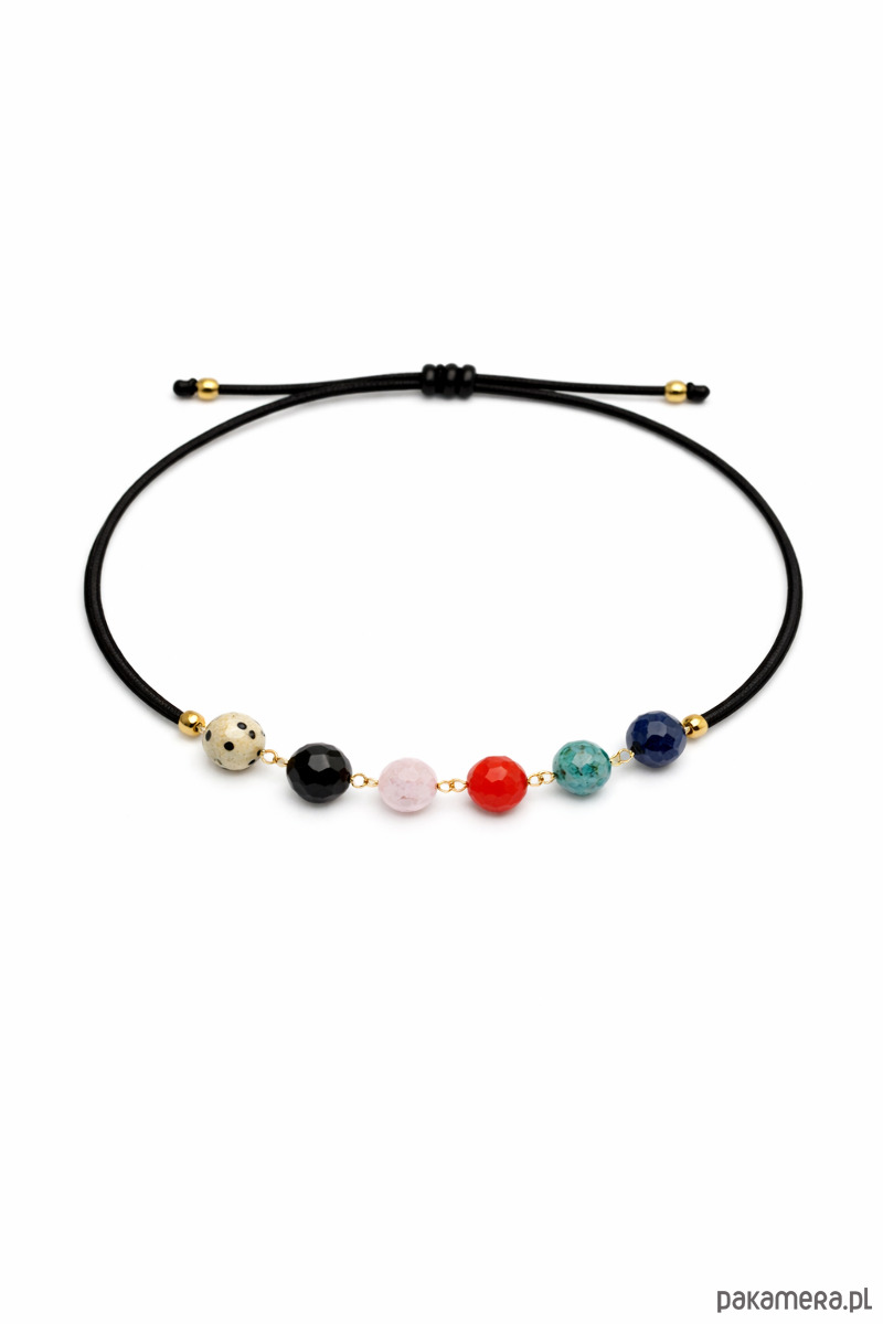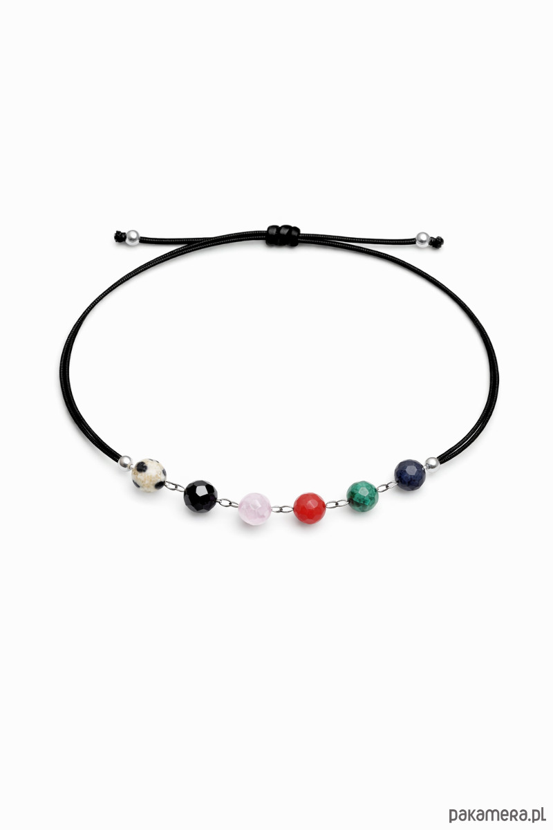Bransoletka została osadzona na trwałej nici z regulowanym przesuwanym zapięciem, dzięki czemu łatwo dopasowuje się do nadgarstka. Kamienie są fasetowane, subtelnie odbijają światło i zachowują naturalny charakter.