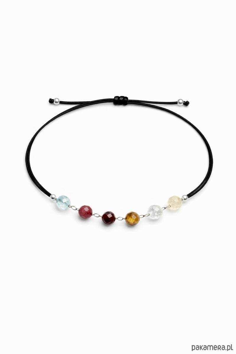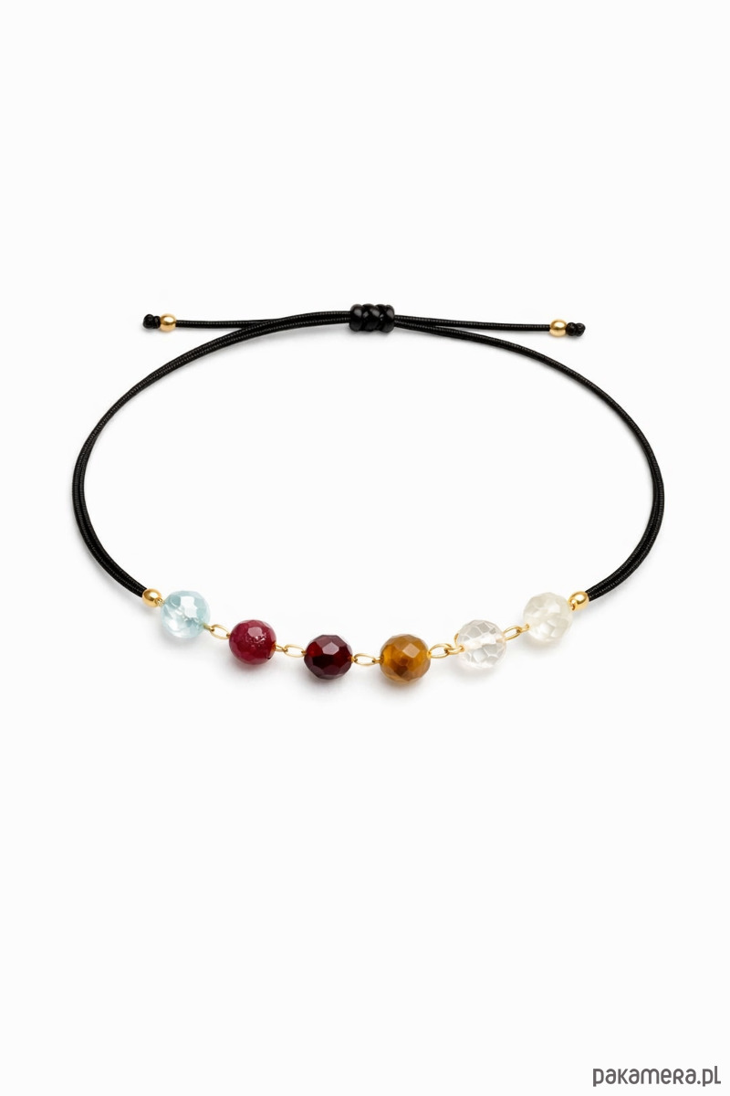 Bransoletka została osadzona na trwałej nici z regulowanym przesuwanym zapięciem, dzięki czemu łatwo dopasowuje się do nadgarstka. Kamienie są fasetowane, subtelnie odbijają światło i zachowują naturalny charakter.